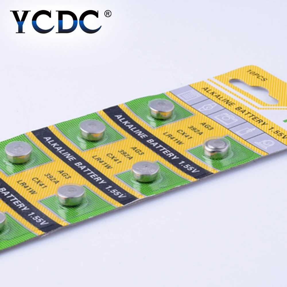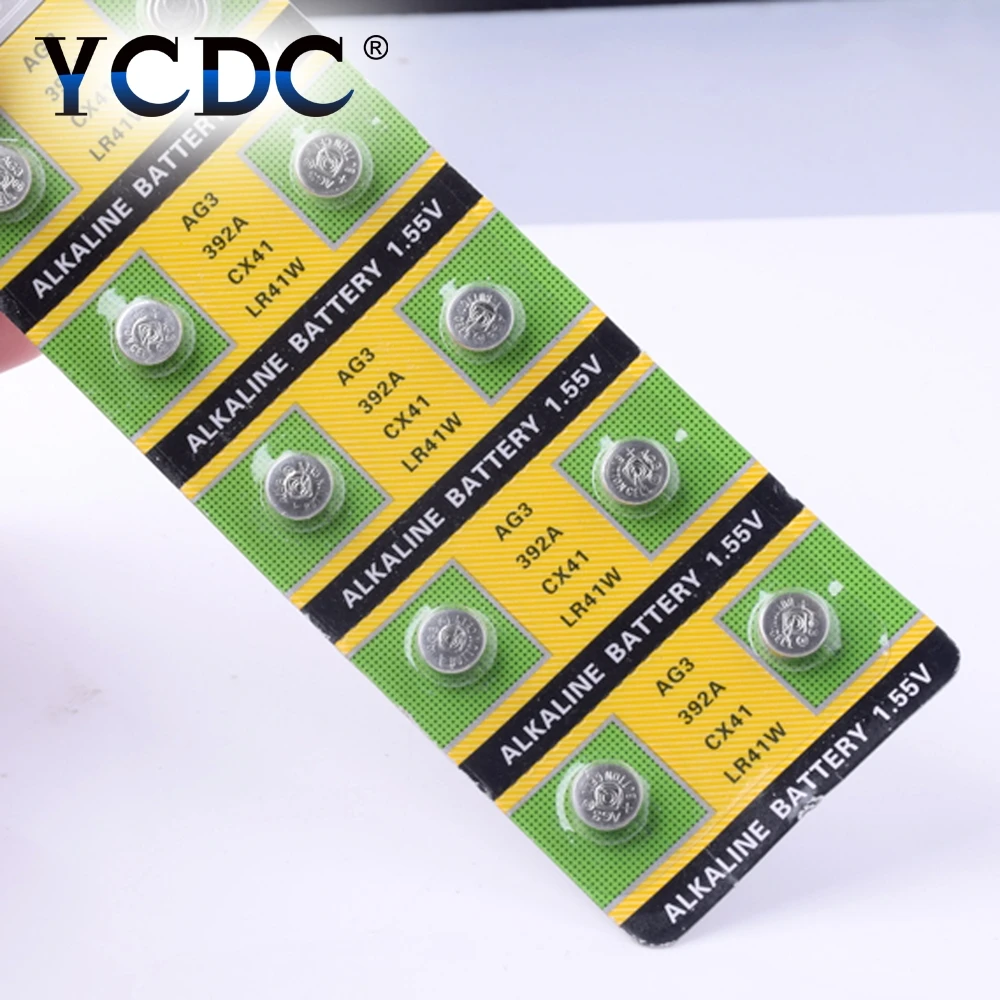 YCDC, 10 шт., 1,55 в, AG3, SR41, 192 стандартная аккумуляторная батарея для часов, игрушек, пультов дистанционного управления, L736 384, SR41SW, CX41, LR41, 392, кнопочные батареи