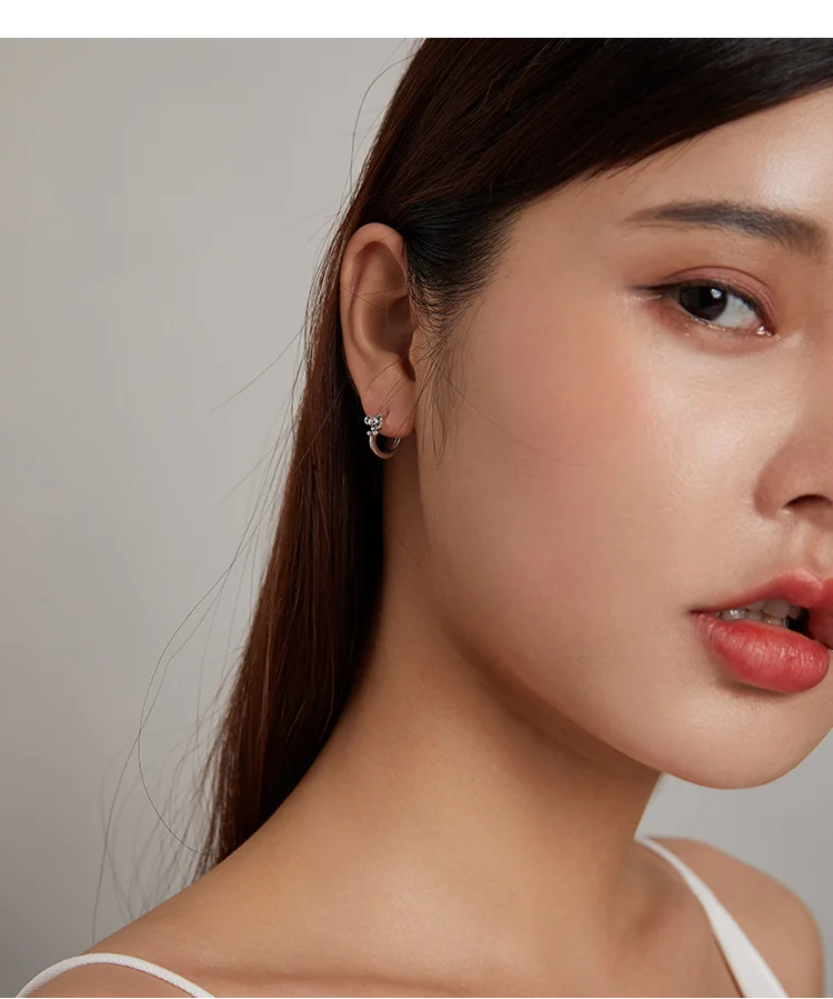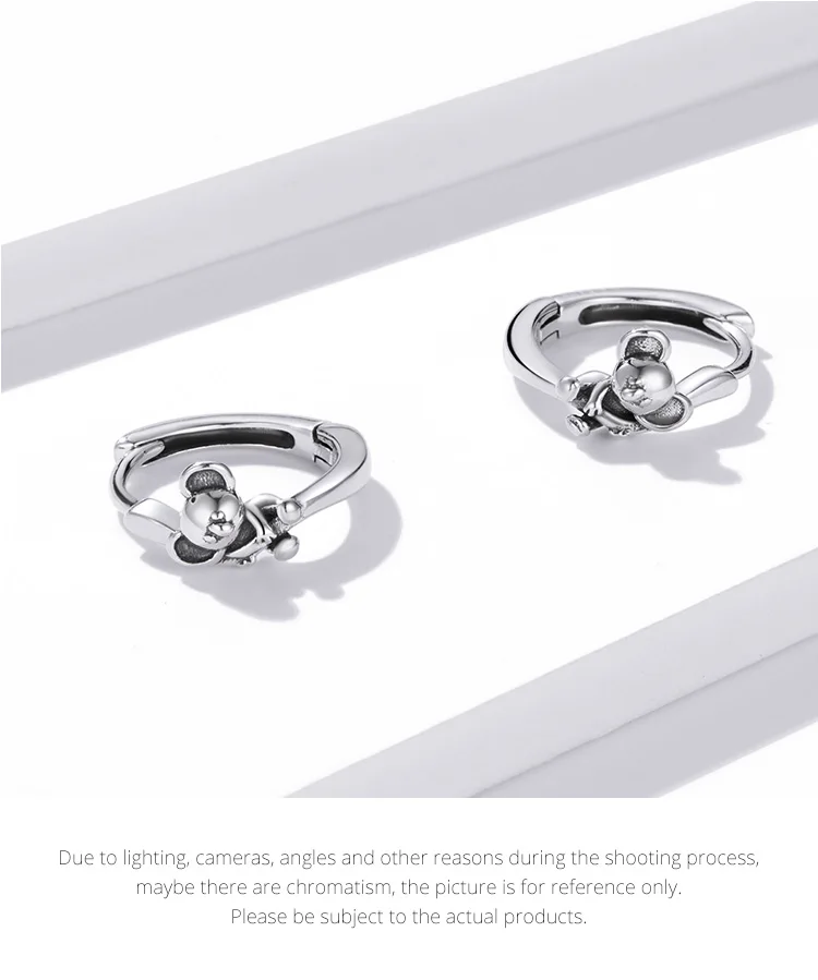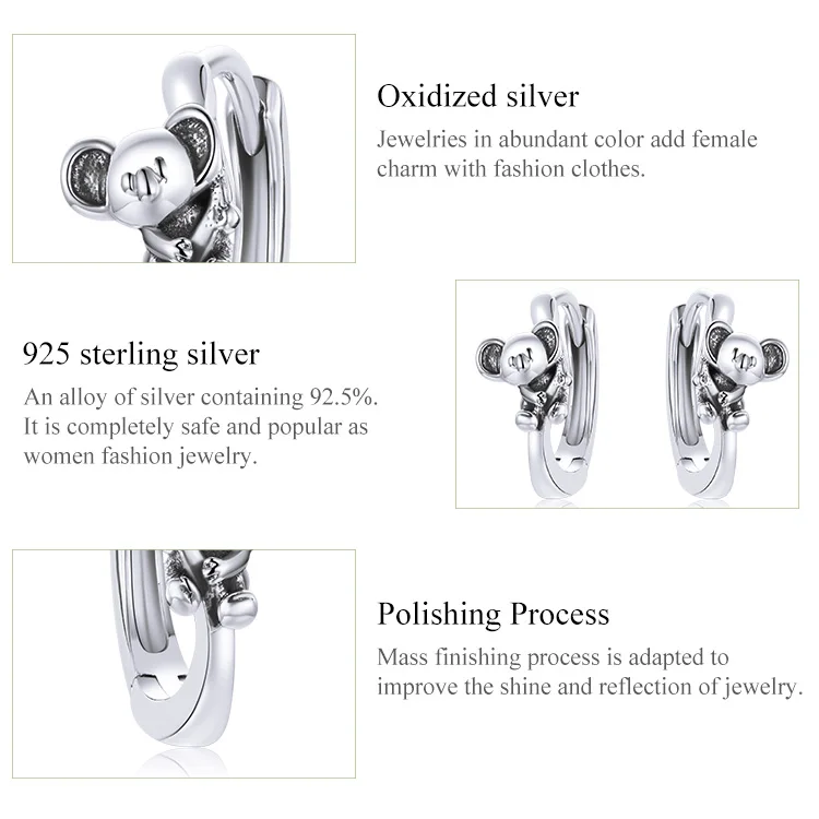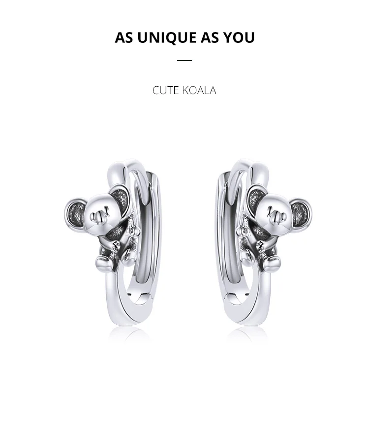 Серьги-кольца женские из серебра 925 пробы, с коалой, BSE507