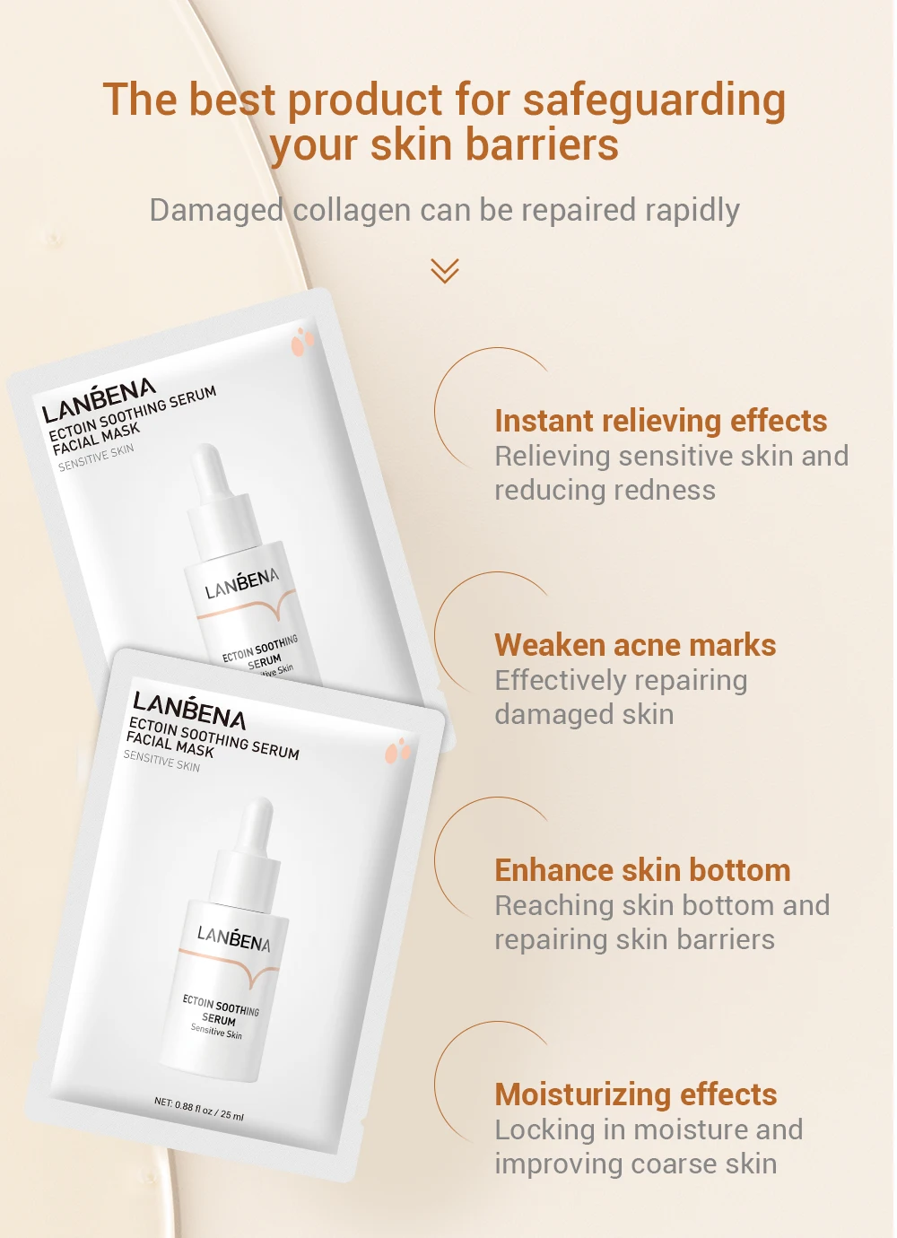 Успокаивающая эссенция LANBENA Ectoin, Антиаллергенная восстанавливающая маска, увлажняющая маска для лечения акне, нежная восстанавливающая основа для кожи лица, 25 мл