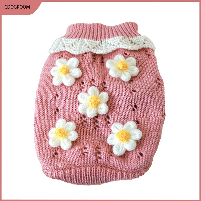 Осенне-зимняя одежда для собак, теплый цветочный свитер для домашних животных, костюм для маленькой собаки, свитер для щенка, кота, одежда для чихуахуа, пудель, Бишон, одежда