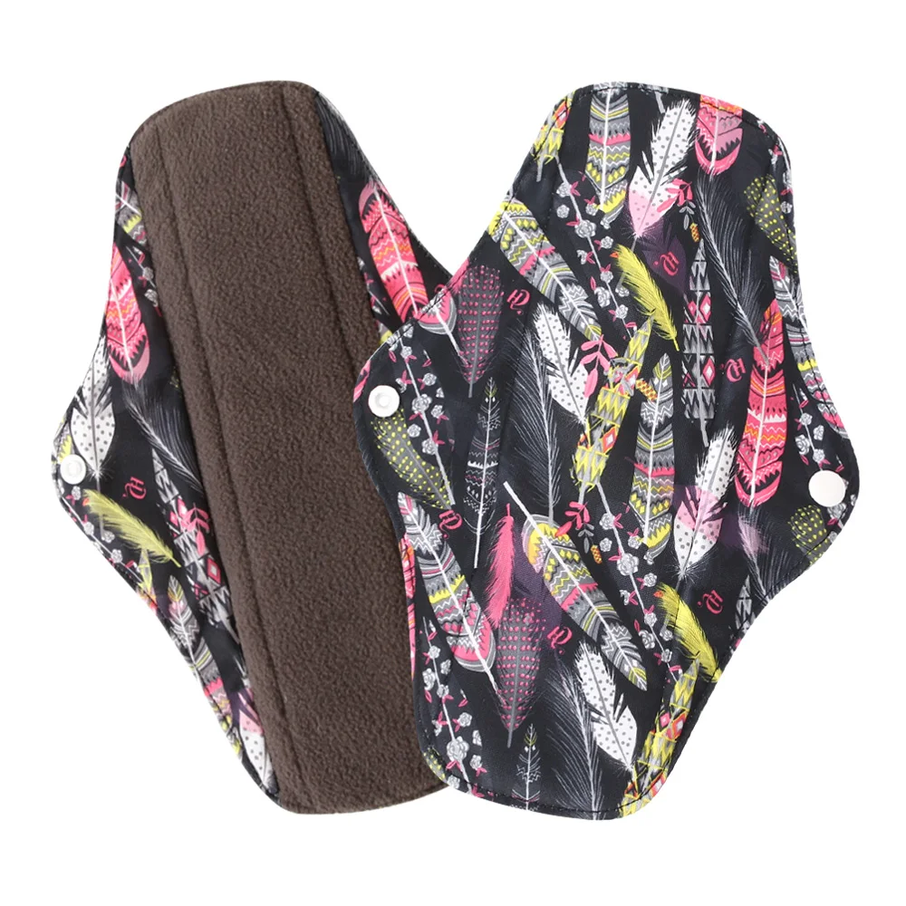 Женские бамбуковые тканевые прокладки моющийся санитарный, многоразовые прокладки, гигиеничные женские менструальные прокладки с мультяшным принтом, тяжелая работа с крыльями