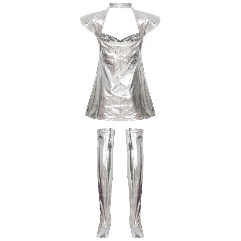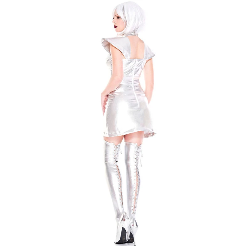 2022 костюмы, красивая девушка, костюм на Хэллоуин, космос, планета, человек, лакированная кожа, Униформа, серебристый цвет, сексуальный костюм, выступление на сцене