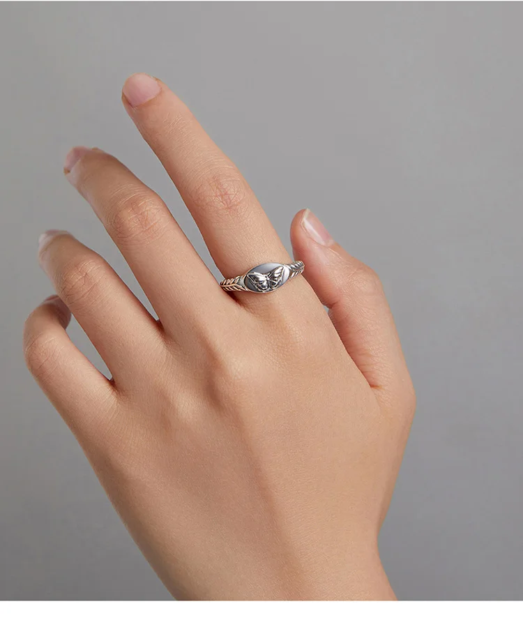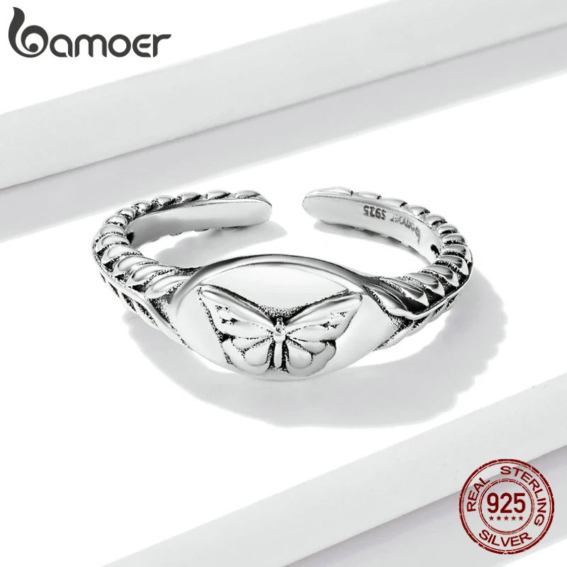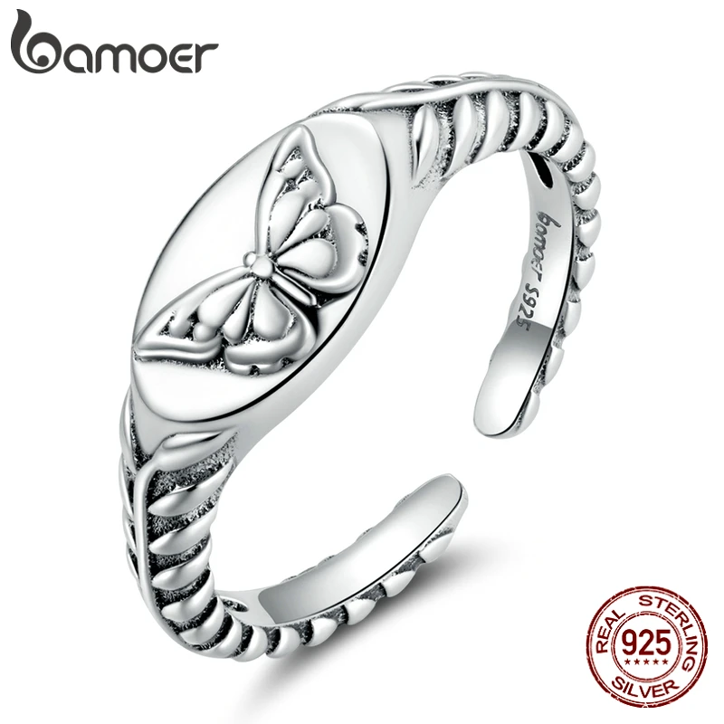 Женское кольцо с бабочкой BAMOER, винтажное регулируемое обручально...