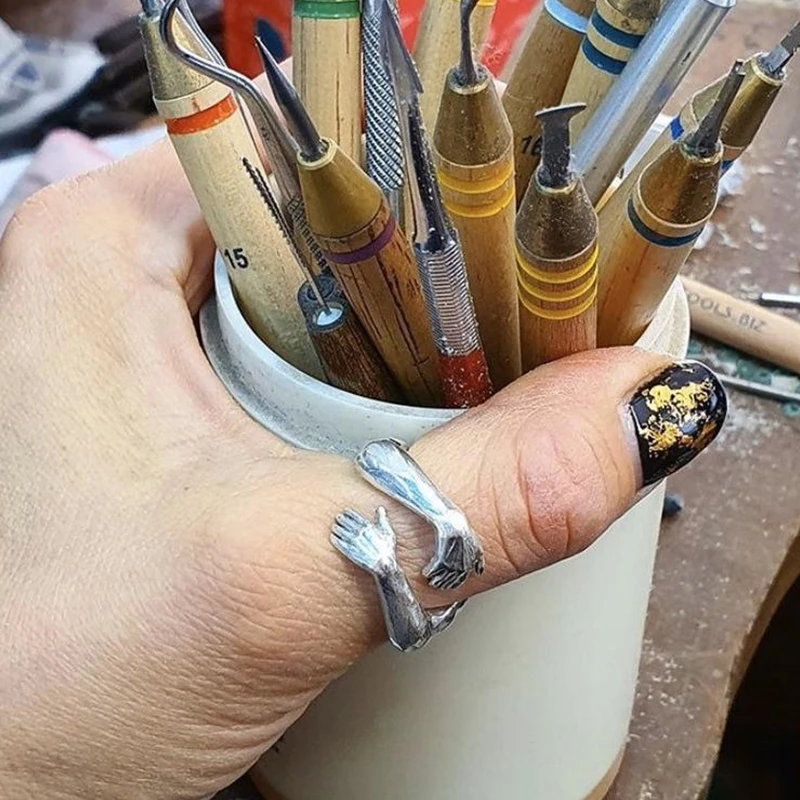 2 предмета обниматься руки кольца серебряные руки объятия открытые ...