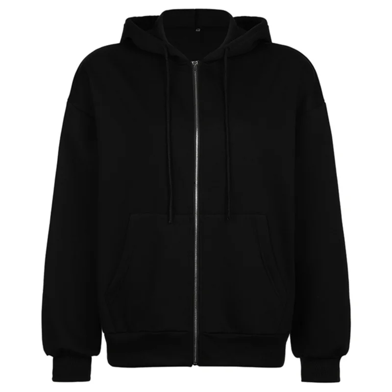 Однотонные толстовки на молнии, женские свободные толстовки с длинн...