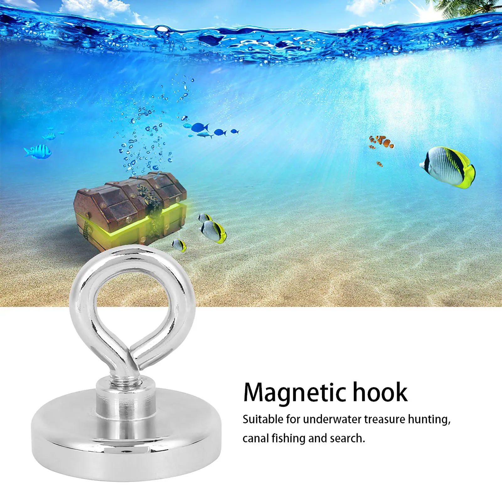 Магнитный крючок со спасательной веревкой 20 м786 дюйма, сила тяги 66,14 фунта, сильный магнит для рыбалки на открытом воздухе, для поиска