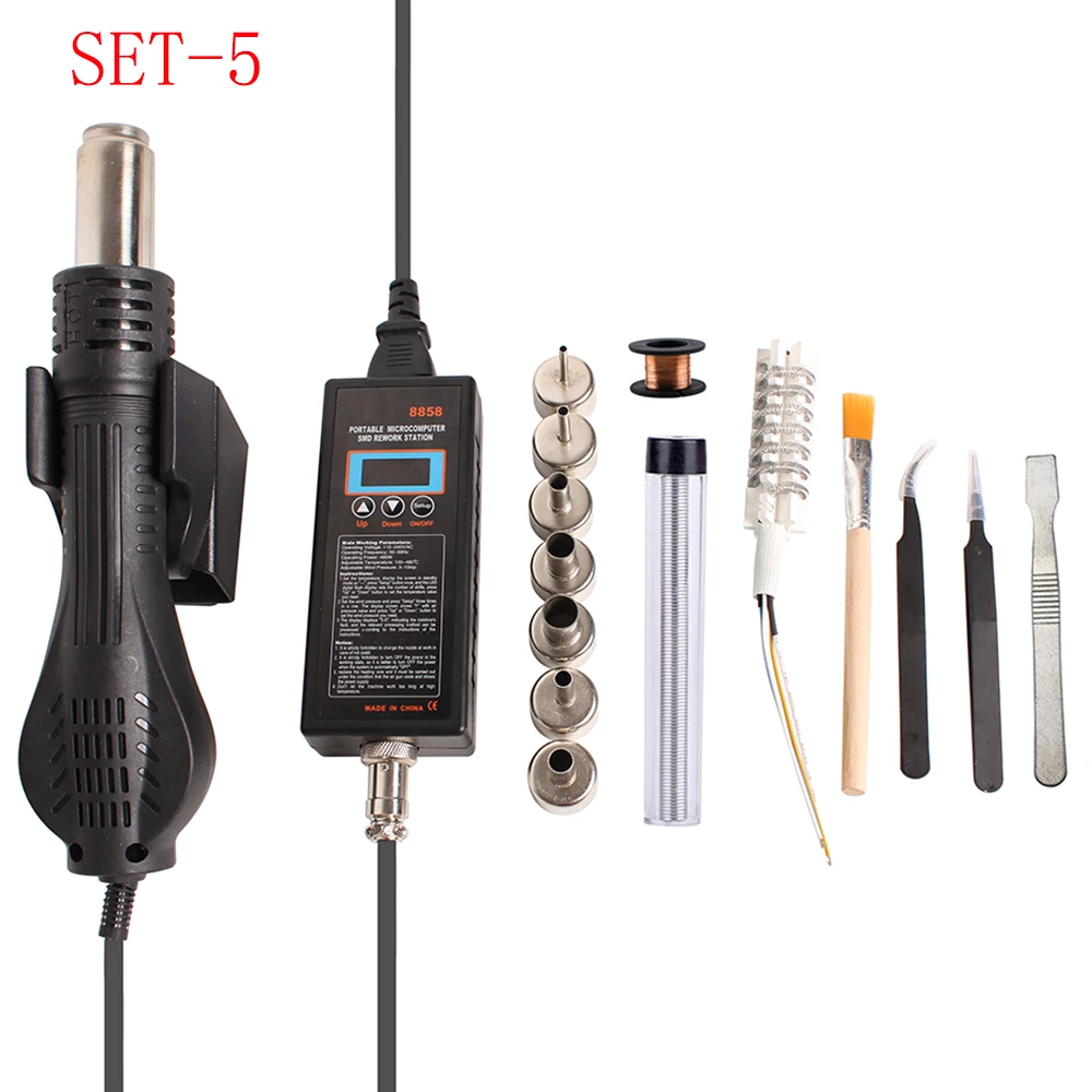 1 контроллер 88581 x ручка для пистолета горячего воздуха1 x держатель для пистолета1 х Кабель питания7 насадокКерамический обогреватель-1 шт.1x6-в-1 вспомогательная инструменты