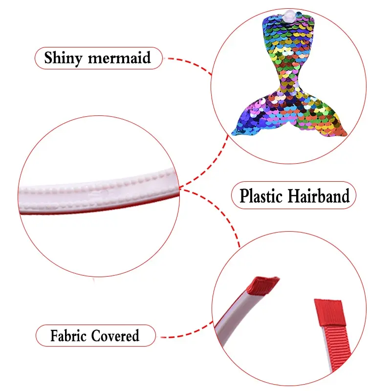 Повязка на голову с радужной русалочкой и двусторонними блестками для детей, принадлежности для вечевечерние на день рождения, аксессуары для волос для девочек, блестящий головной убор