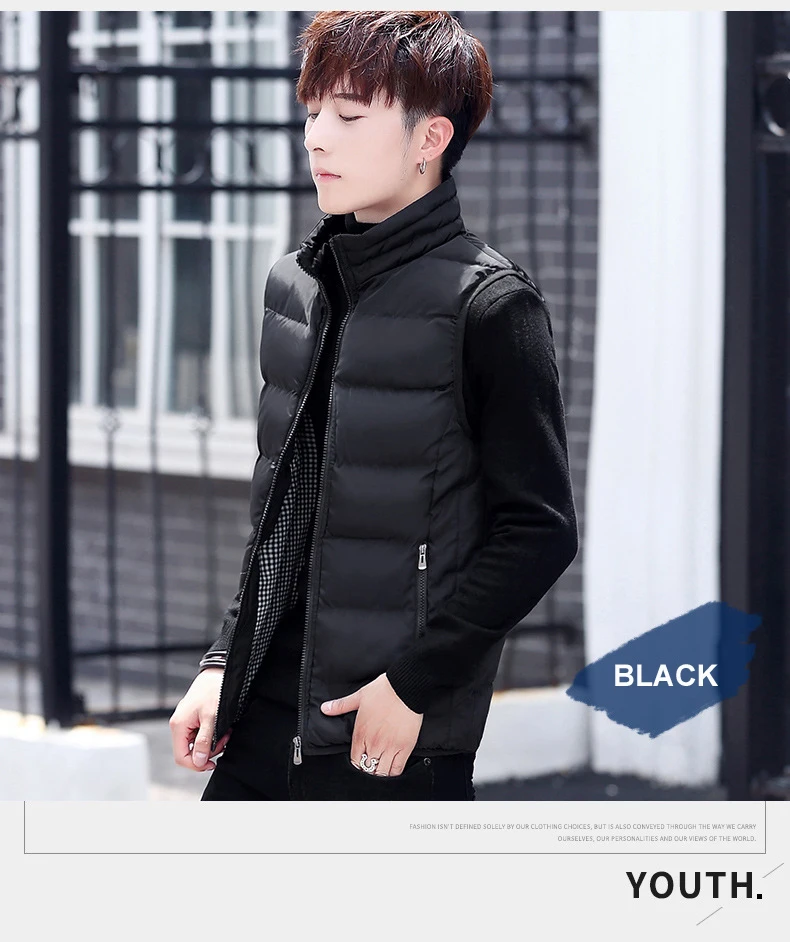 Мужской Хлопковый жилет, однотонный пуховый жилет без рукавов, повс...