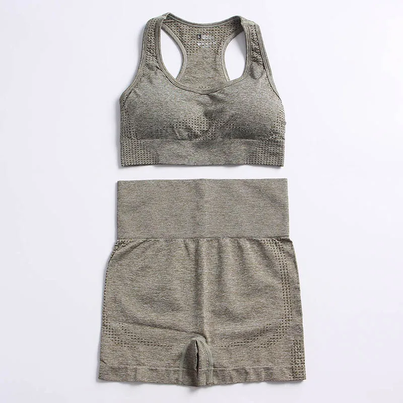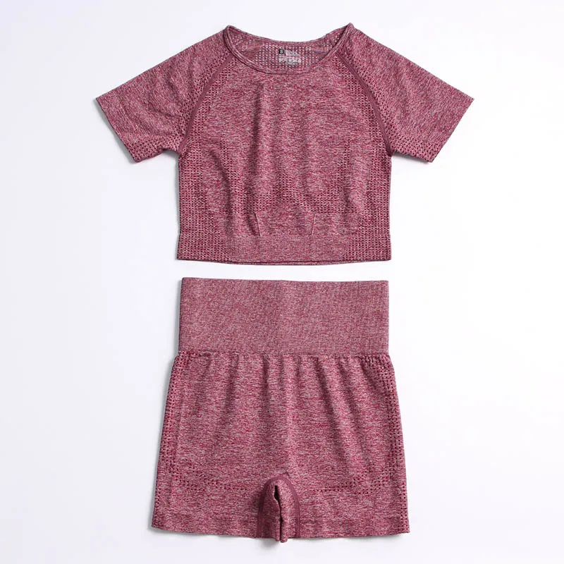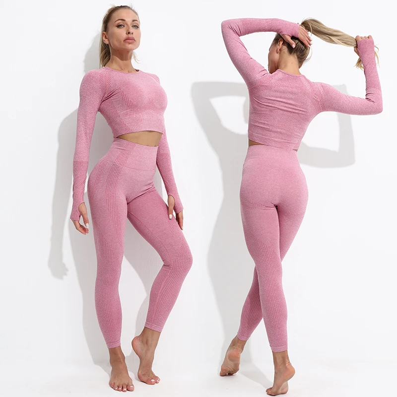 Женские костюмы для йоги из 2 предметов, бесшовные леггинсы с высокой талией, штаны для йоги, шорты с длинным рукавом и коротким рукавом, спортивная одежда, бюстгальтер, одежда для фитнеса