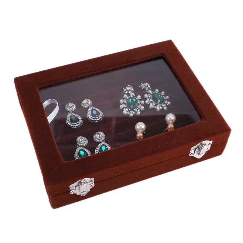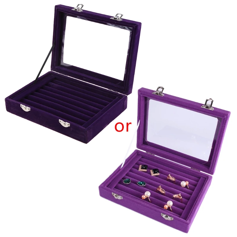 Бархатный стеклянный органайзер для демонстрации колец, сережек, ювелирных изделий, лоток, держатель, чехол для хранения Y1UA
