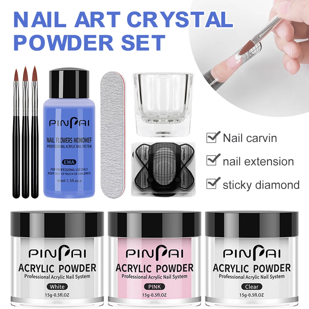 Акриловая пудра для ногтей и жидкий мономер набор с маникюрным инструментом сильное прилипание наращивание ногтей резьба клей гель набор для дизайна ногтей
