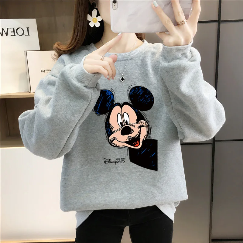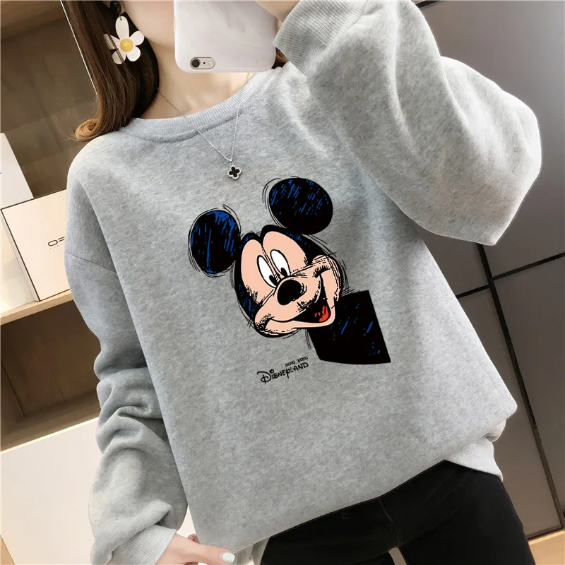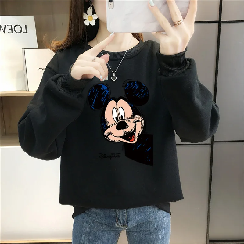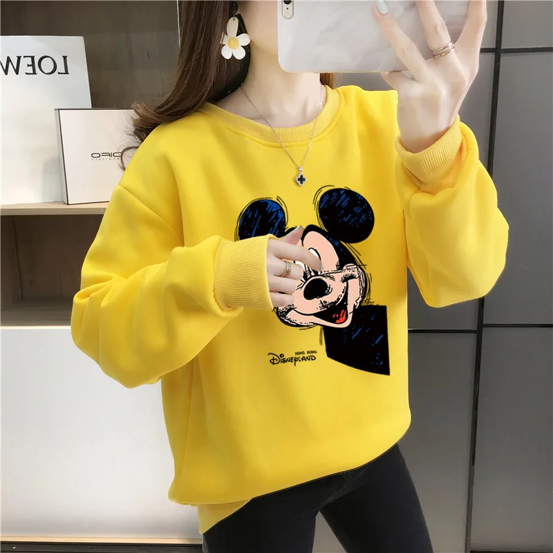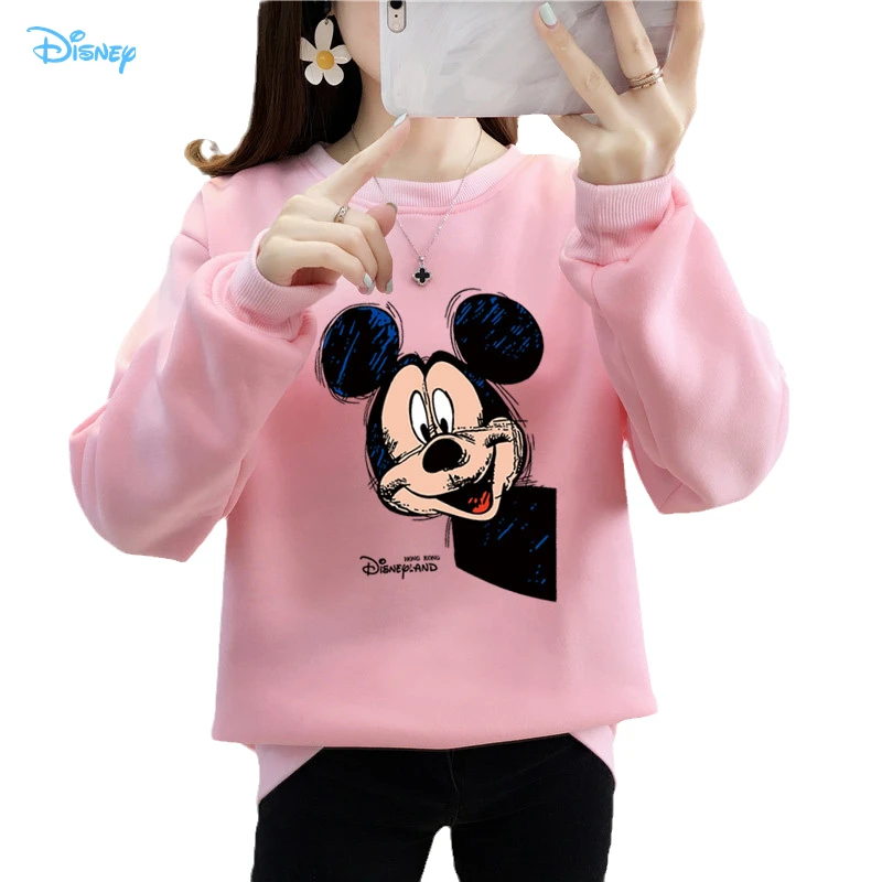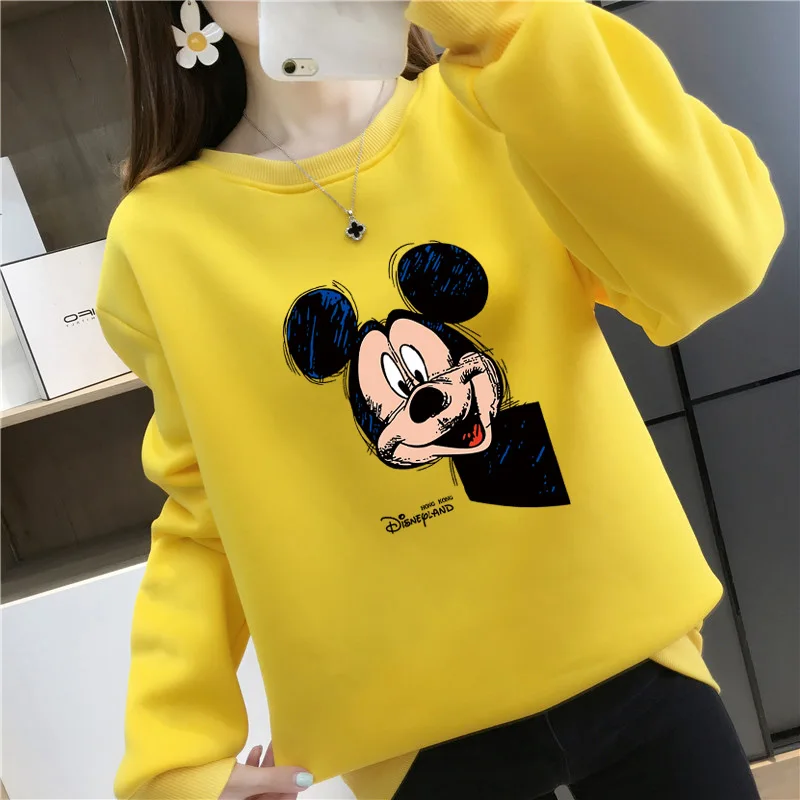Женский флисовый свитшот с длинным рукавом, теплый пуловер с рисунком Микки Мауса из аниме Disney 90-х годов, Y2K, Осень-зима 2021