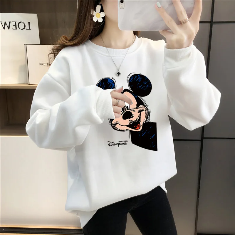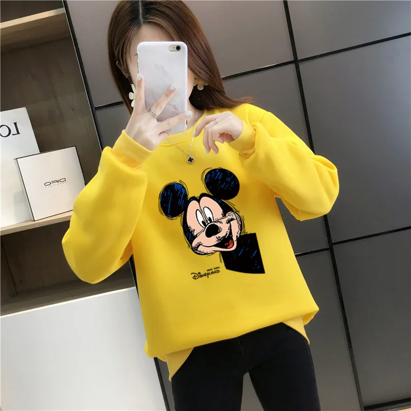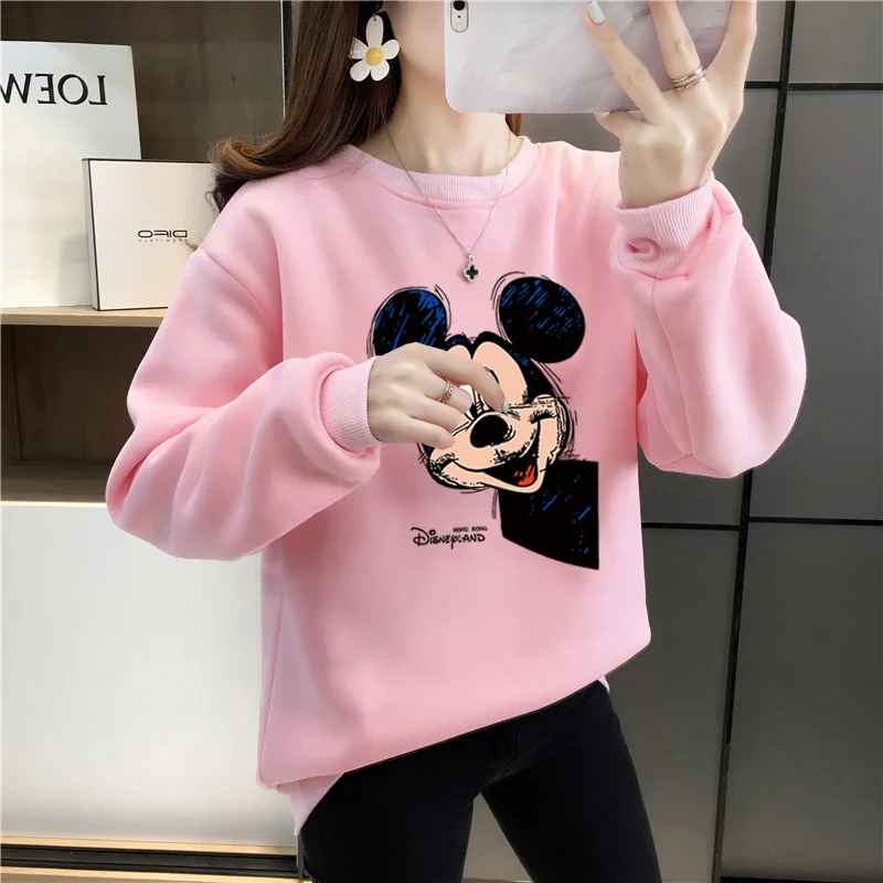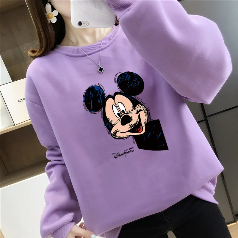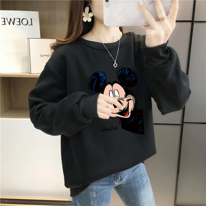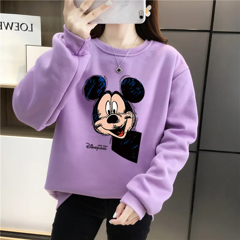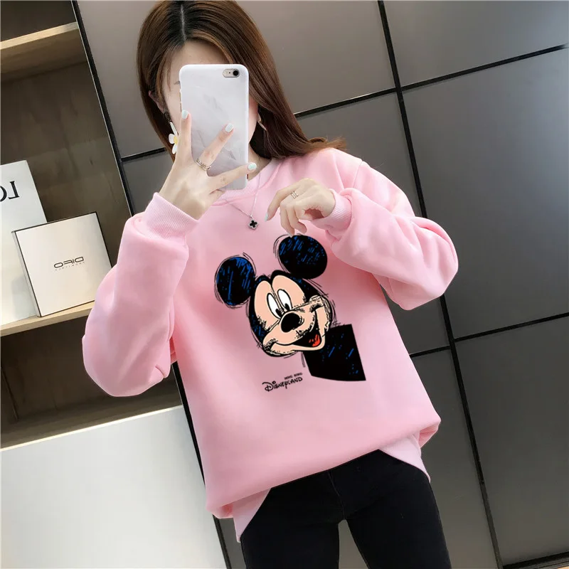 Женский флисовый свитшот с длинным рукавом, теплый пуловер с рисунком Микки Мауса из аниме Disney 90-х годов, Y2K, Осень-зима 2021