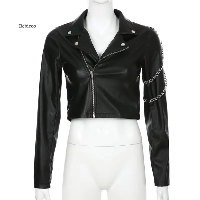 Женская укороченная куртка из искусственной кожи, черная Готическая...