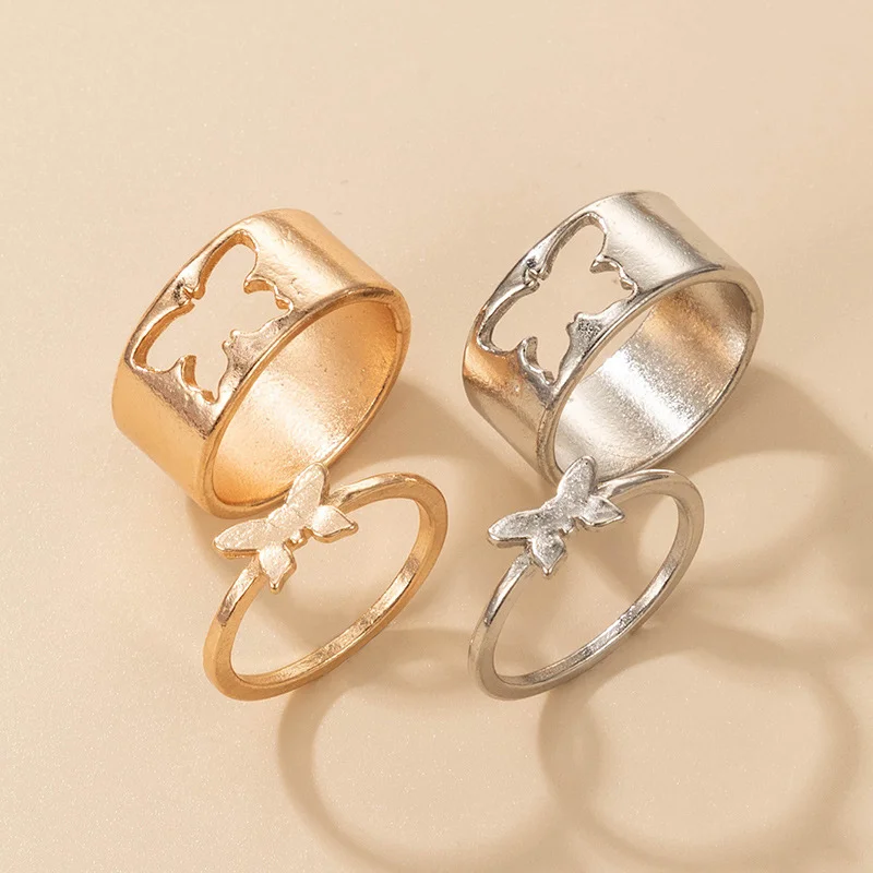 Парные открытые кольца в стиле хип-хоп и панк с бабочками разных фо...