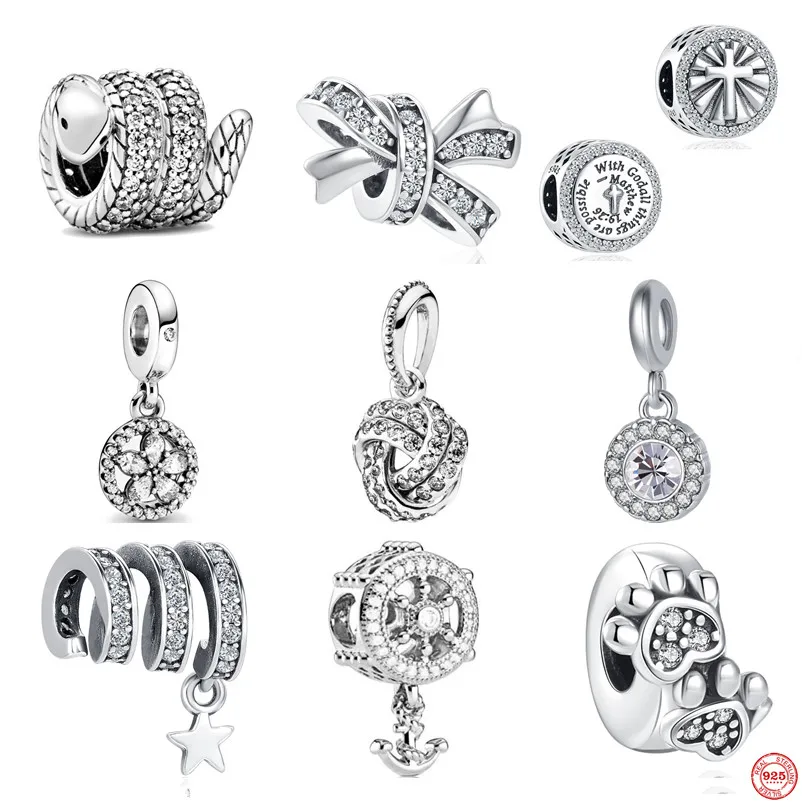 Браслет Собачья лапа из серебра 925 пробы с белыми бусинами-крестиками