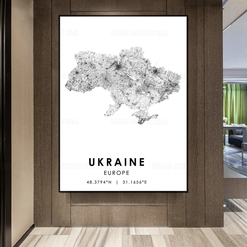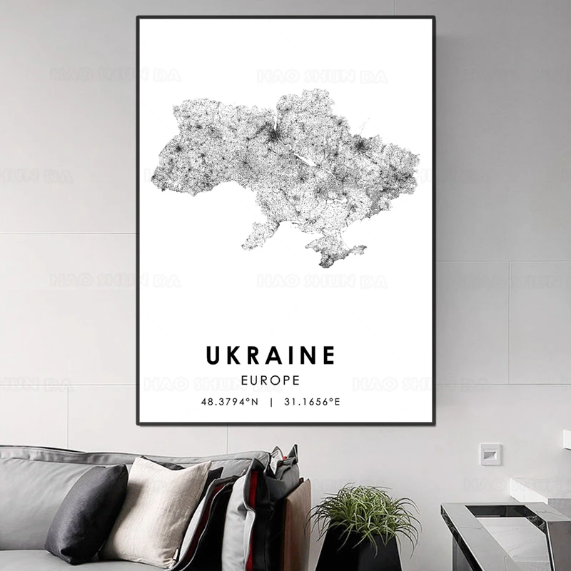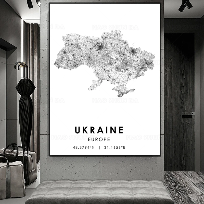 Черно-белая фотография Европа карта Украины плакат HD печать настенная Картина на холсте для украшения дома художественное оформление