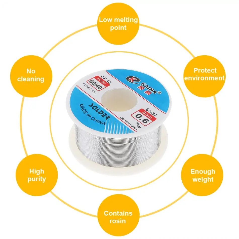 Особенности:-Низкая температура плавления для железа с содержанием железа более 60 Вт-очистка, антиоксидантная и коррозионная стойкость-Хорошая теплостойкость, сопротивление изоляции, отсутствие брызг и коррозии-Область применения: электронные приборы, приборы, бытовые приборы, сварочные компоненты-Экономичная и практичная, стабильная производительность продукта, безопасна в использовании, удобна в переноске и проста в эксплуатации. Это важный материал для электронных энтузиастов.