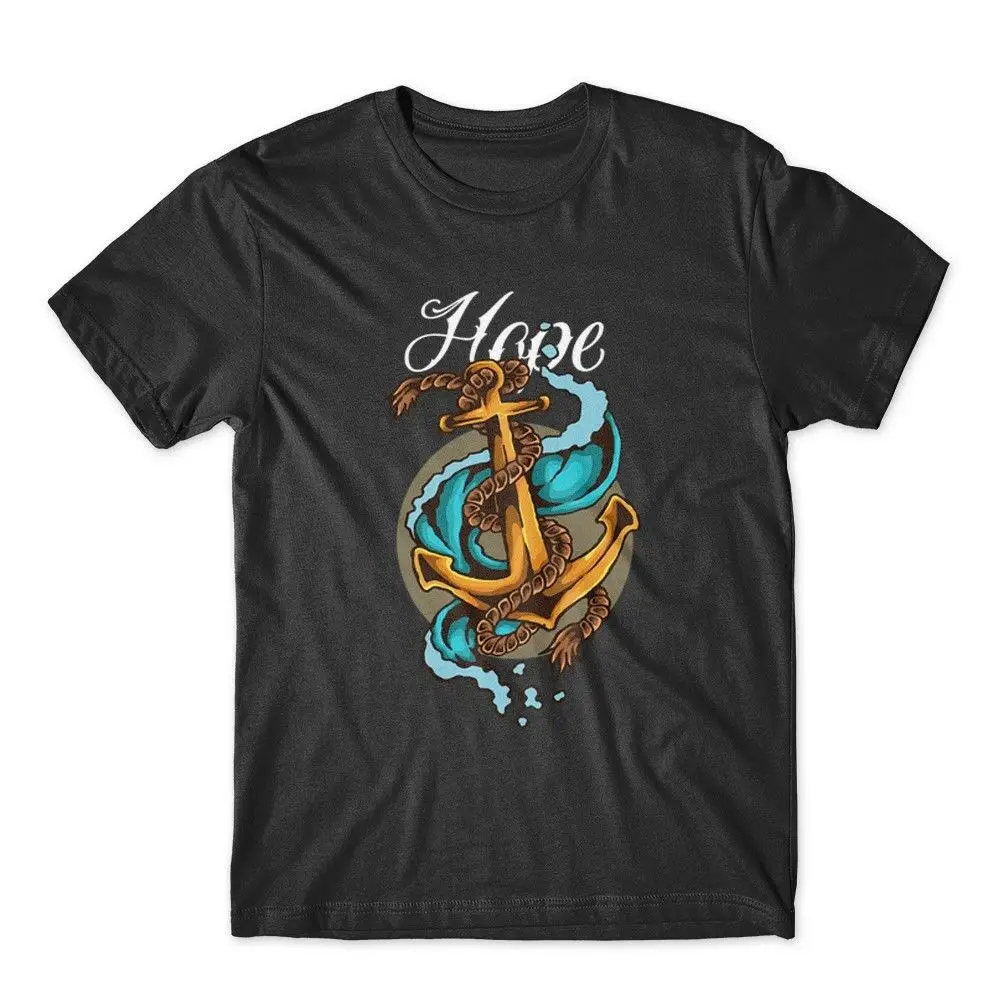 Футболка с якорем и татуировкой. Рубашка Hope из 100% хлопка, Премиум футболка с графическим рисунком, Новая классная футболка в стиле Харадзюку, Мужская надпись