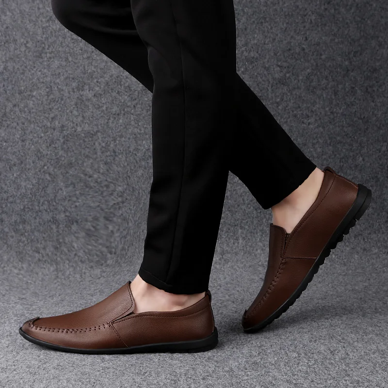 Туфли мужские деловые кожаные, Мокасины, повседневные Нескользящие, износостойкие, плоская подошва, модная обувь, большие размеры