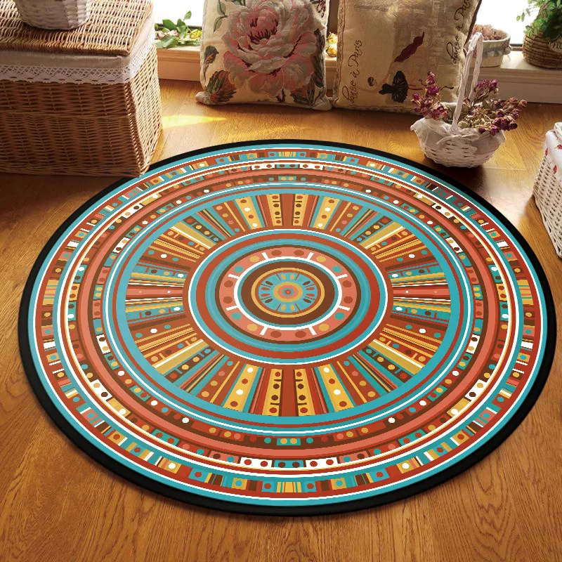Круглый ковер с мандалой в этническом стиле, подвесная корзина для журнального столика в европейском классическом стиле, декоративный коврик для гостиной