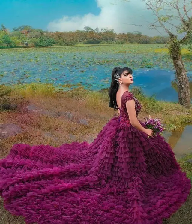 Красивые темно-фиолетовые платья из тюля с оборками в несколько рядов для фотосессии, кружевное свадебное платье на шнуровке, пышное длинное женское платье