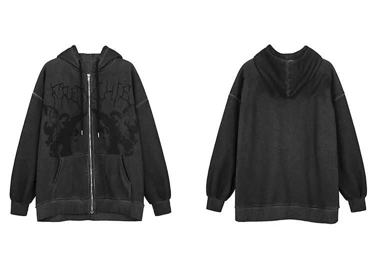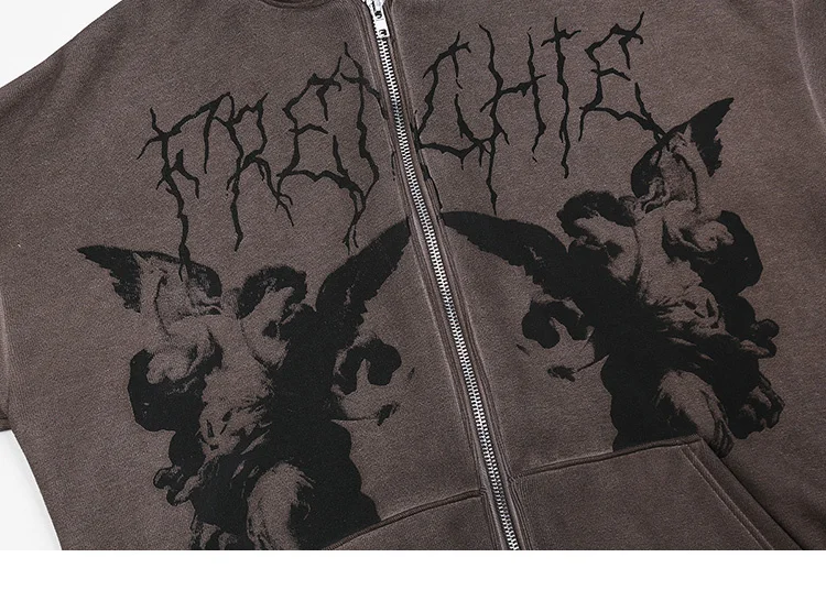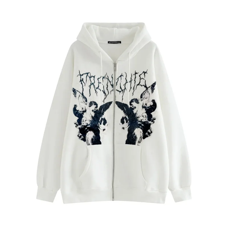 Женские толстовки Y2k в стиле хип-хоп, свитшоты с капюшоном с принтом ангела в стиле темный, флисовые спортивные костюмы, зимние пальто на молнии, верхняя одежда в стиле панк