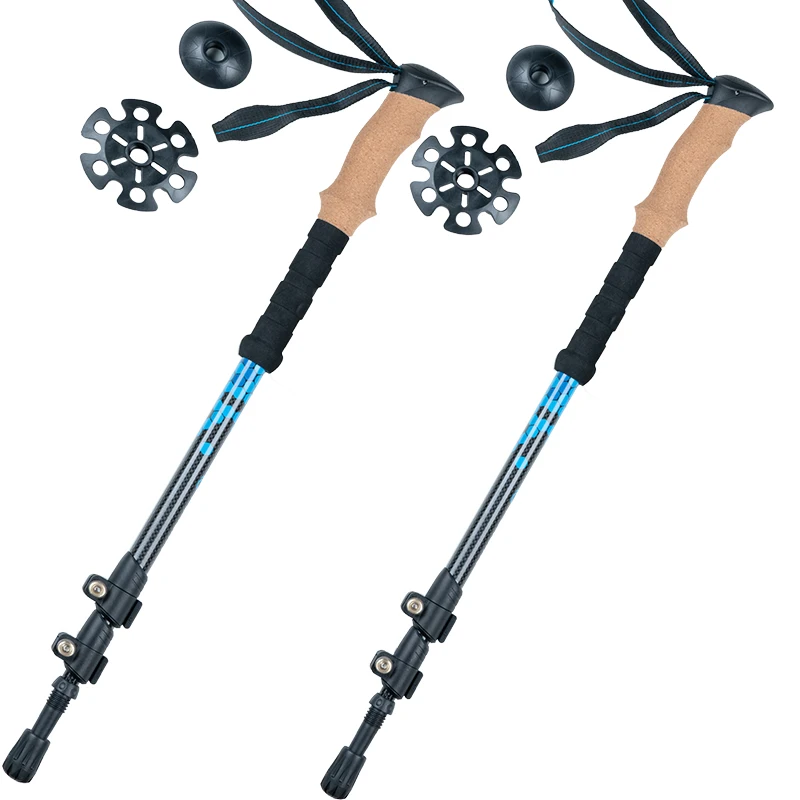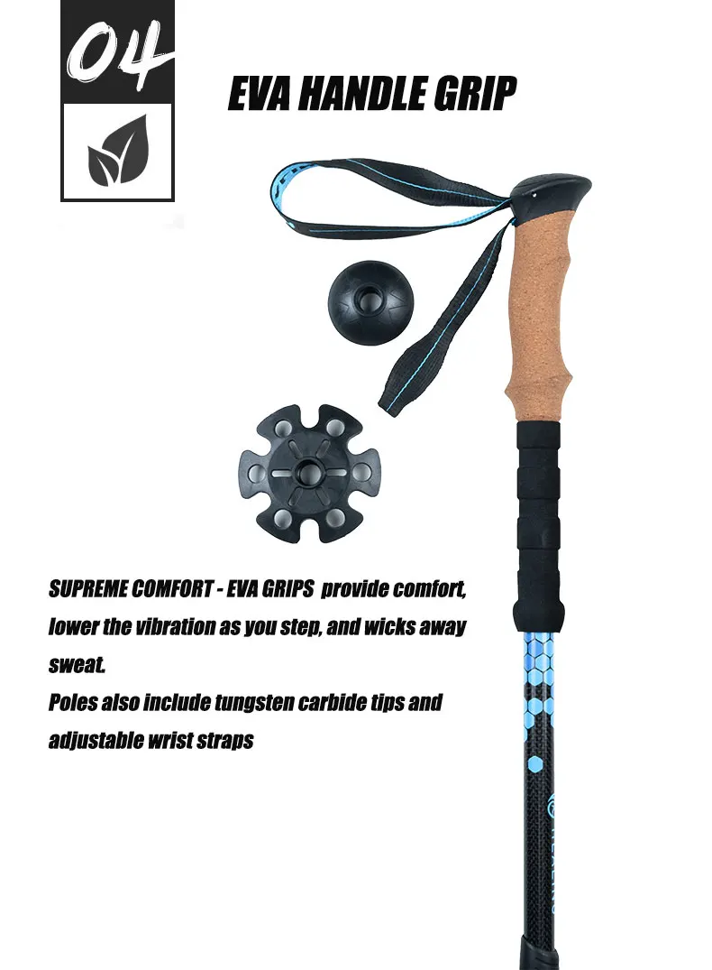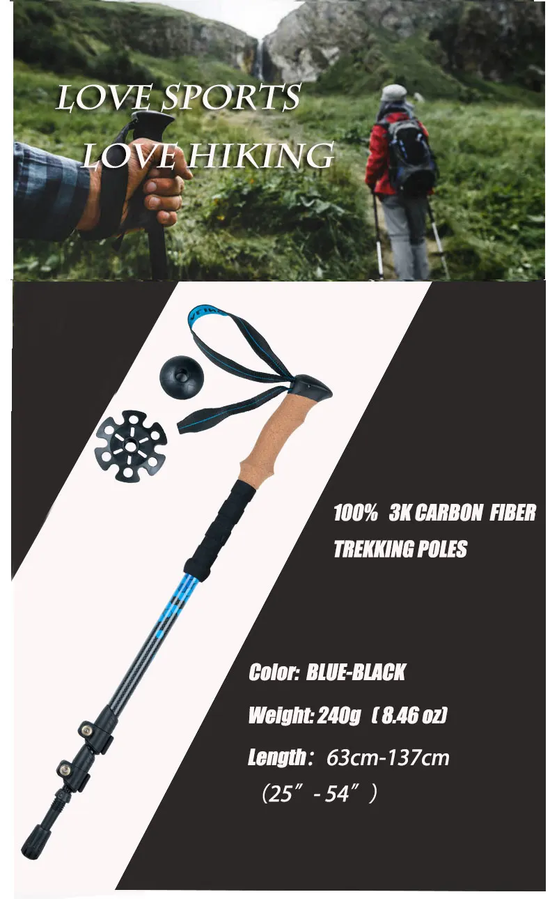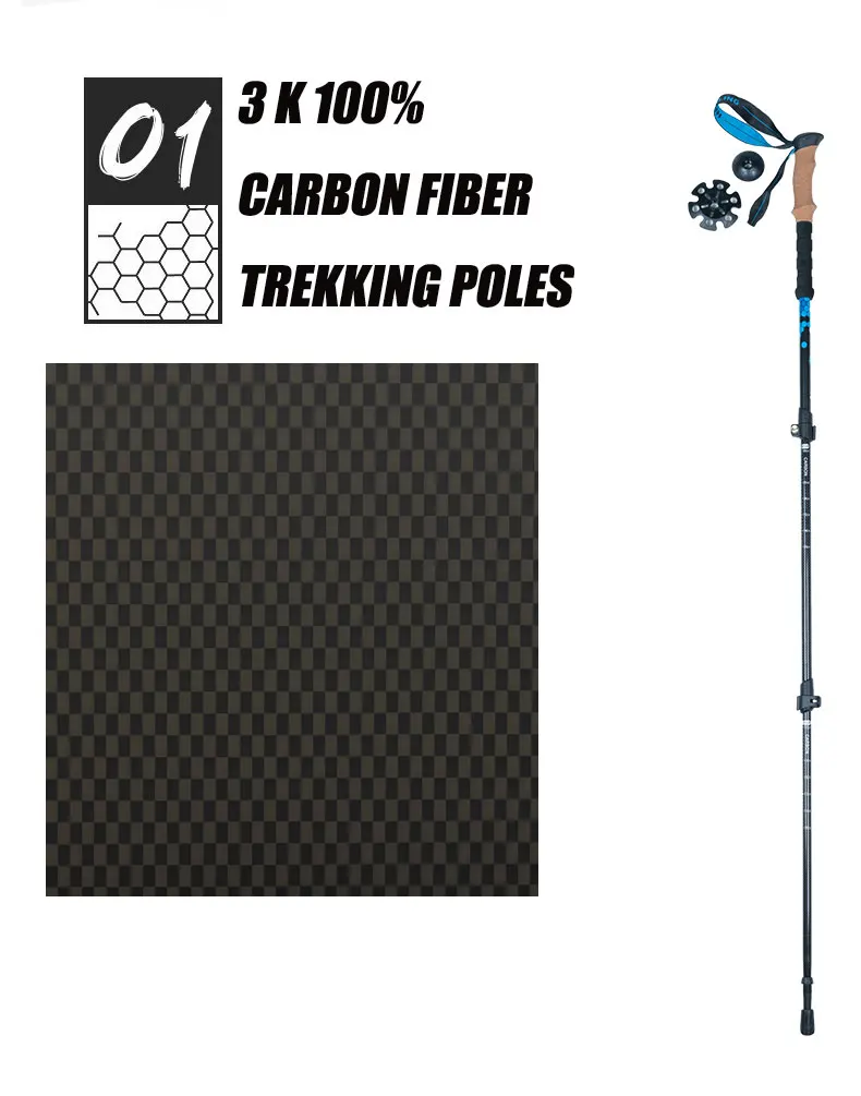 Треккинговые палки 3K из углеродного волокна, 3 секции, регулируемые, из углеродной пробки, с мягкой ручкой из ЭВА, 100%
