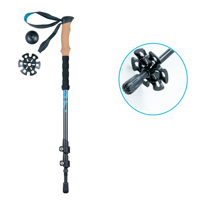 Синие 3 секции регулируемые треккинговые палки фабричное производство уличная палка 100% 3K Углеродное волокно с мягкой ручкой EVA