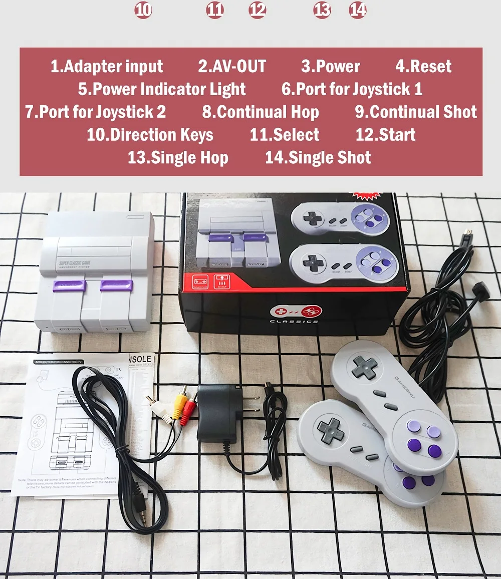 Особенности:Классическая версия Super NES совместима с классическим контроллером и классическими аксессуарами для контроллера Pro.Система Super NES Classic Edition имеет оригинальный внешний вид домашней консоли '90s.Просто подключите его и играйте.Характеристики:Материал: АБС-пластикРазмер изделия: 13.5cmX11cmX4.5cmВес изделия: 0,76 кгЦвет: серыйПосылка включает в себя:1x игровая консоль1x av-кабель1x Руководство пользователя1x источник питания2x ручки1х коробка