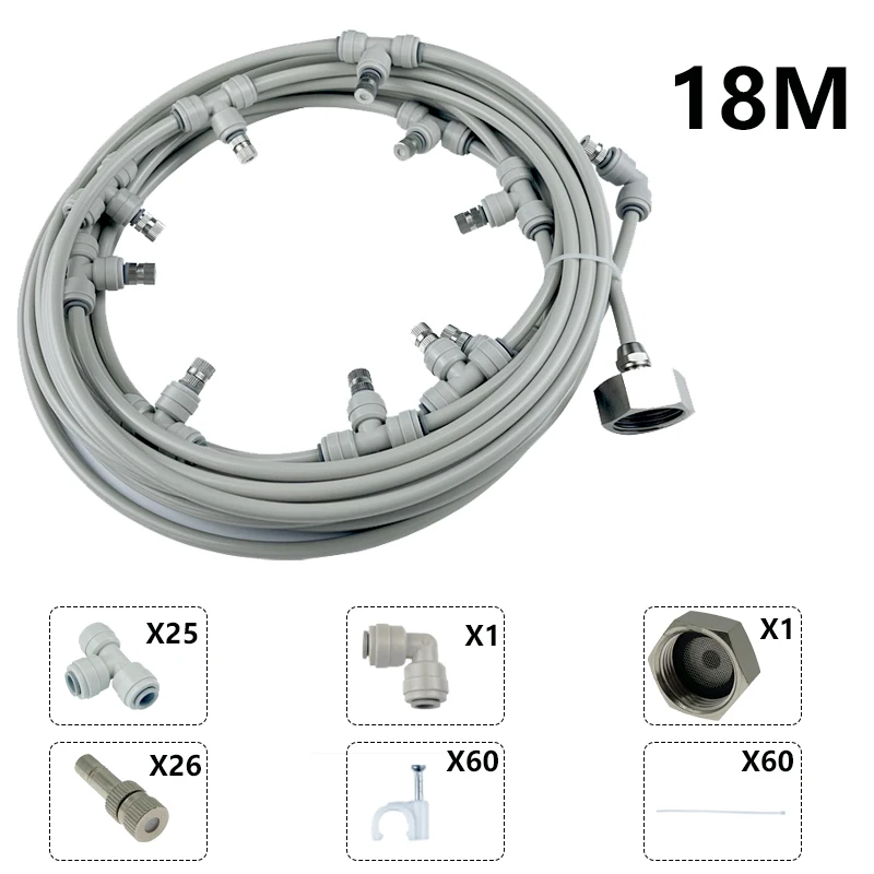 Комплект распылителя воды 6-18 м, влажный туман, садовый небулайзер, наружная система запотевания, водяной туман для теплицы, увлажнение, охлаждение внутреннего дворика