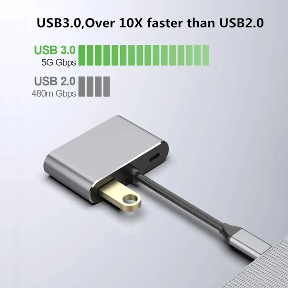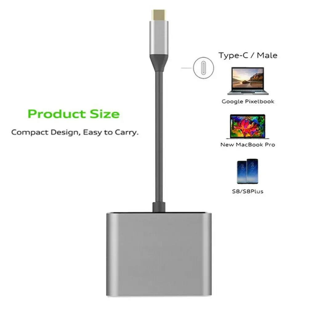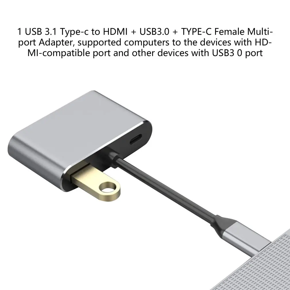 Особенности:1. Удобство использования: 1 USB 3.1 Type-C на HDMI-совместимый + USB3.0 + Type-C женский многопортовый адаптер, поддерживаемые компьютеры для устройств с HDMI-совместимым портом и других устройств с портом USB 3,1.2. Высокое разрешение: адаптер поддерживает максимальное разрешение 3840x2160P/30 Гц (4K * 2K), с этим адаптером вы можетеЛегко делитесь фильмами с другом на большом телевизоре/мониторе/проекторе с HDMI-совместимым портом отВаш компьютер type C.3. Многофункциональность: интерфейс USB 3,1 Type C со скоростью передачи данных до 10 Гбит/с, используйте стандартный USB-порт для подключения таких устройств, как флэш-накопитель или камера, или USB-кабель для синхронизации и зарядки вашего iPhone,iPad или iPod и т. Д.4. Хорошая производительность: порт type C/F позволяет заряжать 12-дюймовый Macbook,Google new Chromebook Pixel и другие устройства с портом type C. Поддерживает максимальное напряжение зарядки 20 в и ток 3 А5. Простота в эксплуатации: подключи и работай, не требует установки драйверов или внешнего источника питания, можно подключить U-диск, жесткий диск, мышь, клавиатуру, телефон и т. д.Описание:Этот адаптер является идеальным решением для преобразования интерфейса type-c в USB-C / 4k HDMI-совместимый/USB 3,0 три интерфейса, очень удобно.Подходит для всех типов телефонов и компьютеров с интерфейсом type-c.Характеристики:Цвет: серый, серебристыйМатериал: корпус из АБС-пластикаТип продукта: USB 3.1 Type-c to type-C + HDMI-совместимый + USB 3,1 video 3,0Тип штекера: Штекерная головка типа c/никелированная совместимая головка типа C/USB3.0/ HDMIПосылка1 x адаптер типа CПримечания:1. Из-за разницы между различными мониторами изображение может не отражать реальный цвет изделия. Мы гарантируем, что модель реального изделия не отличается от представленной на фото.2. Возможны незначительные различия в размерах из-за разных измерений вручную.