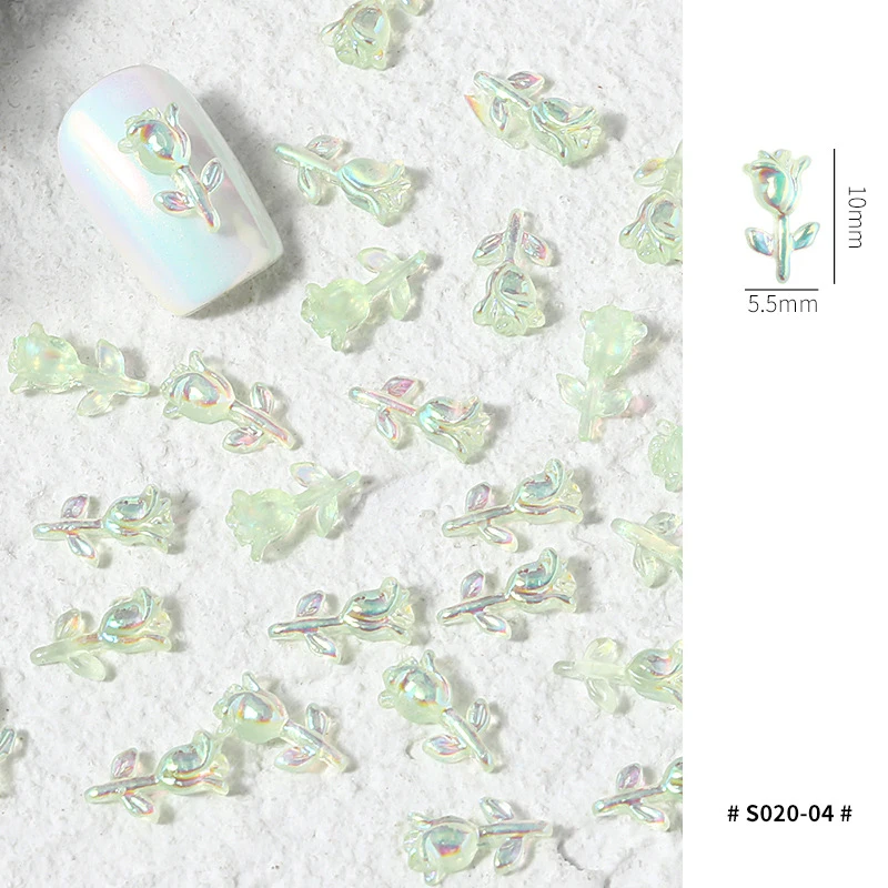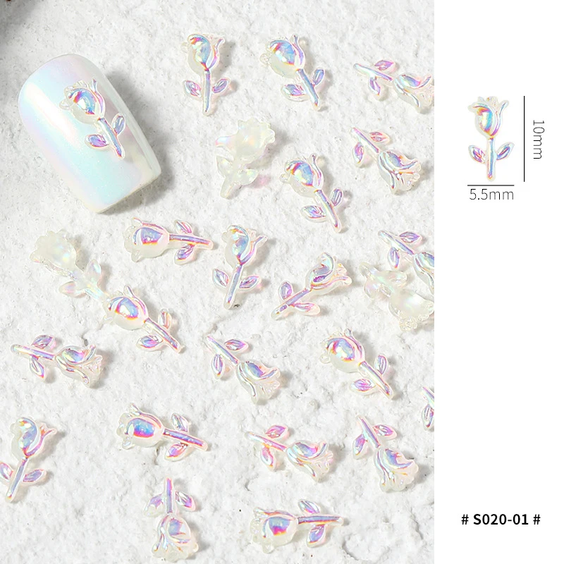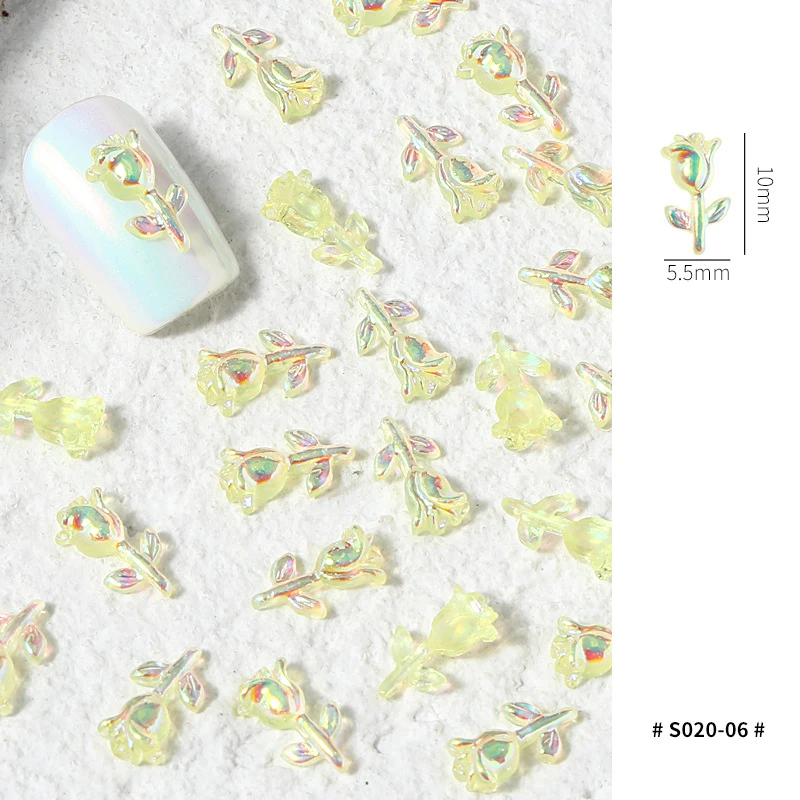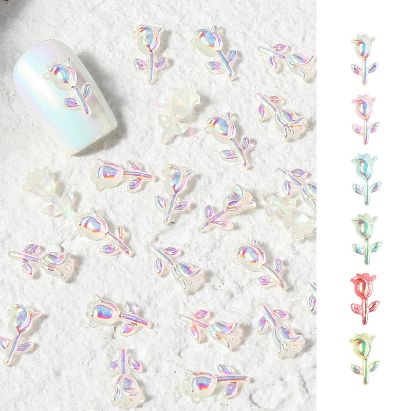 30 шт 3D смолы Аврора роза цветы украшения для ногтей 10*5,5 мм Красочные 2021 ювелирные украшения Подвески DIY маникюрные аксессуары для ногтей Спецификация: