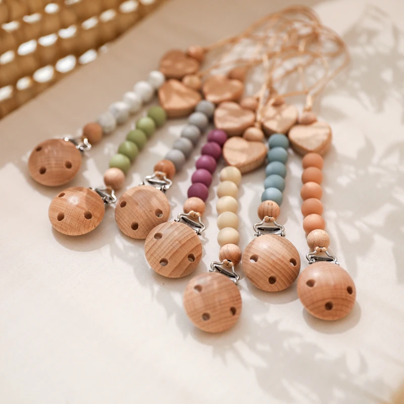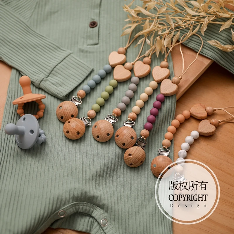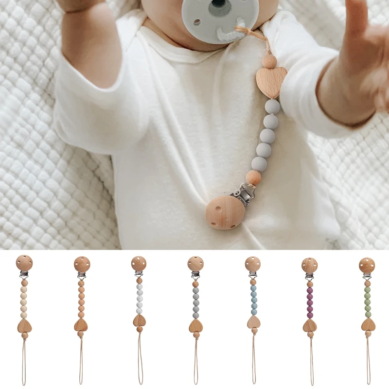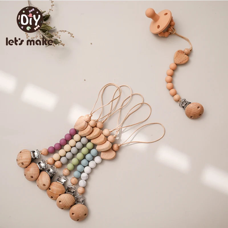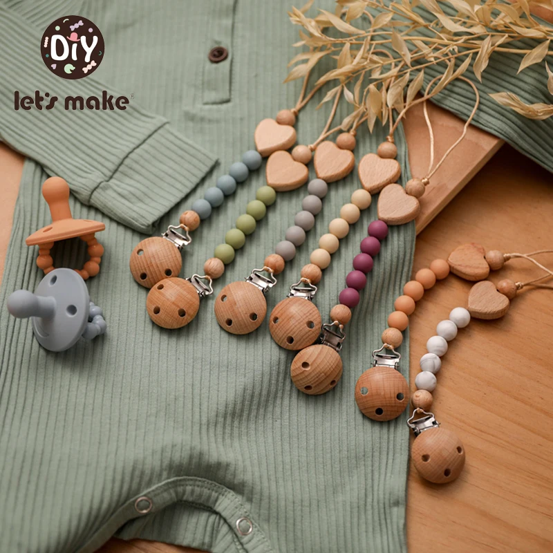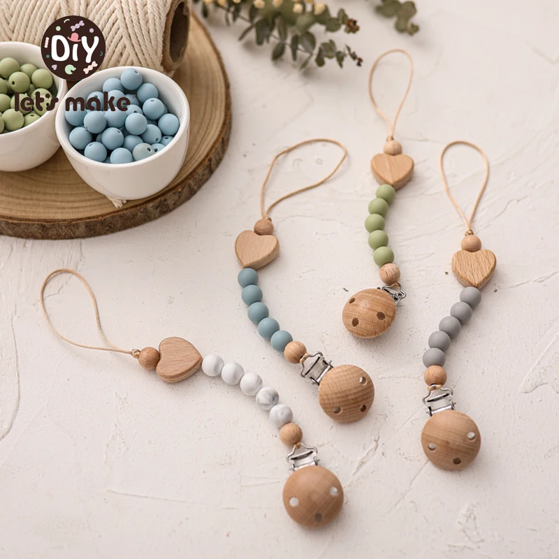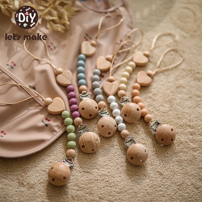 Let's Make, 1 шт., детская силиконовая трехярусная буковая деревянная пустышка, цепочка с сердечком, индивидуальное имя, ручная работа, подарок на день рождения ребенка