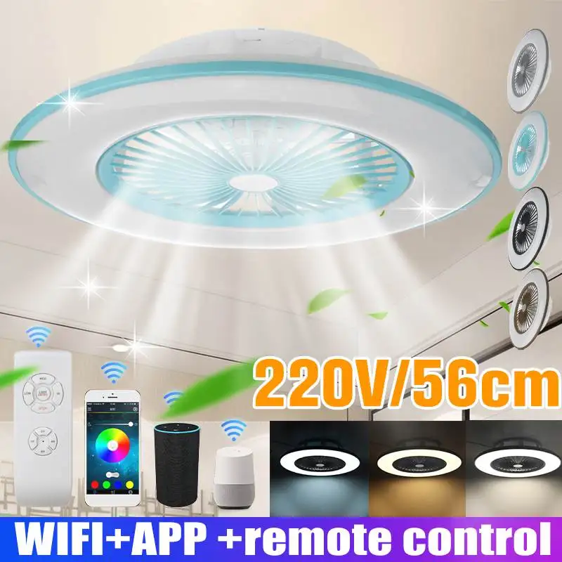 Умный светодиодный потолочный вентилятор с дистанционным управлением, 56 см, 220 В