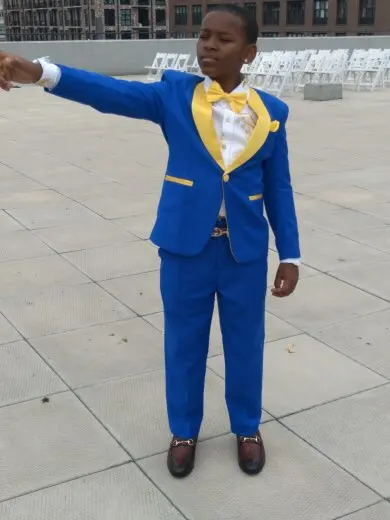 Смокинг для жениха мужской, шаль с золотым отворотом, 2 предмета, свадебный пиджак + брюки + галстук, Королевский синий цвет