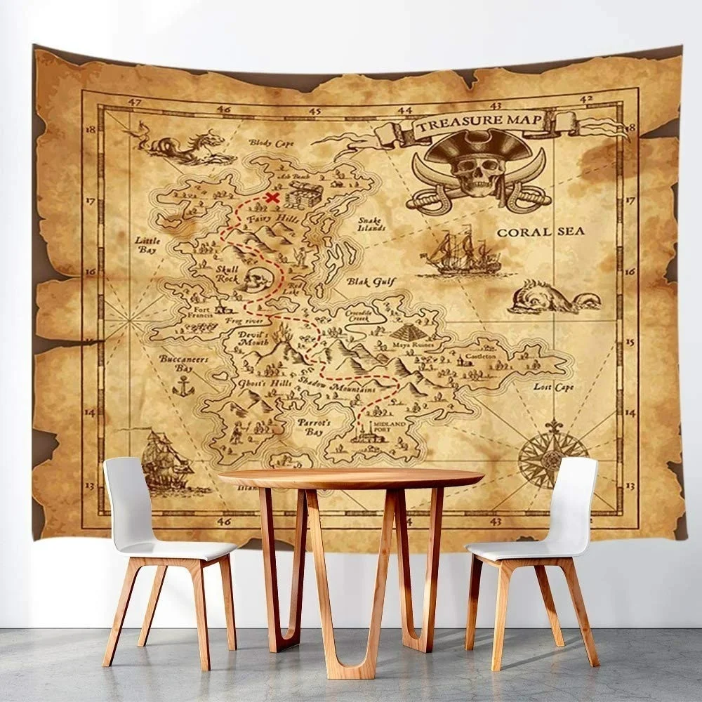 Супер подробная Карта сокровищ Пираты Золотая тайная Морская история тематическая карта остров гобелен широкий настенный для спальни гостиной
