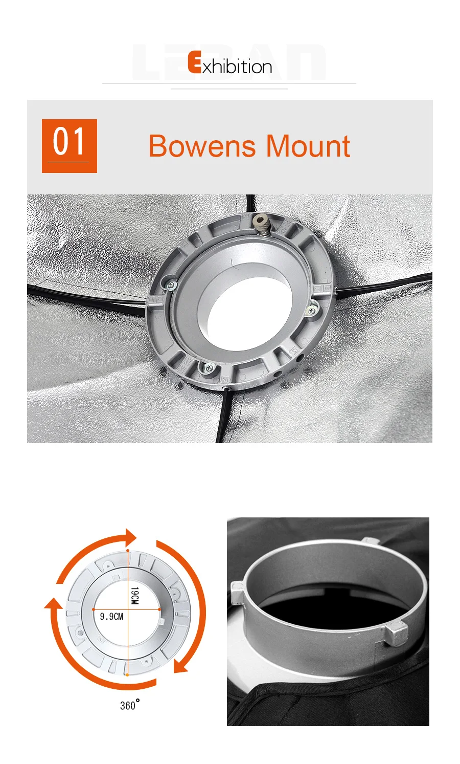 Легко разбирается, легко складывается и легко переносится, идеально подходит для студийной или наружной мобильной фотографии.
