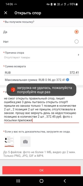 Товар пришел не в полном объёме. Продавец вернул часть денег.