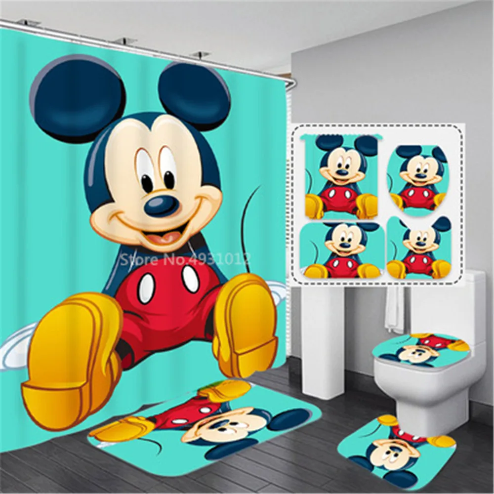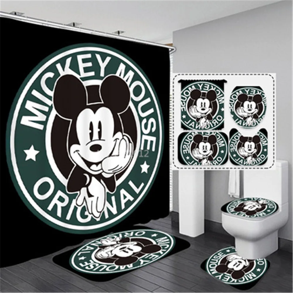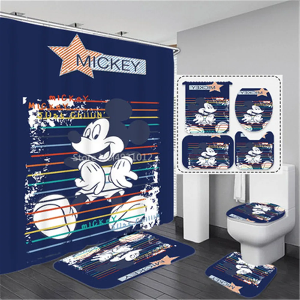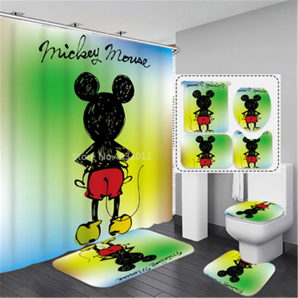 Новинка, занавеска для душа с принтом Микки и Минни Маус из Диснея, чехол для унитаза, коврик для ванной, коврик, Набор предметов, крючки для штор