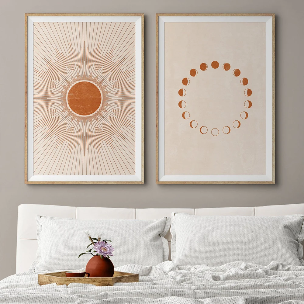 Sun Moon печать Бохо декор для спальни современный Mid Century минималистичный плакат Гостиная Холст Картина Терракотовая настенная живопись картинки