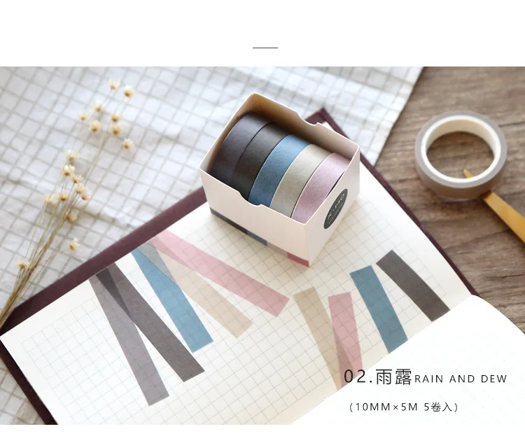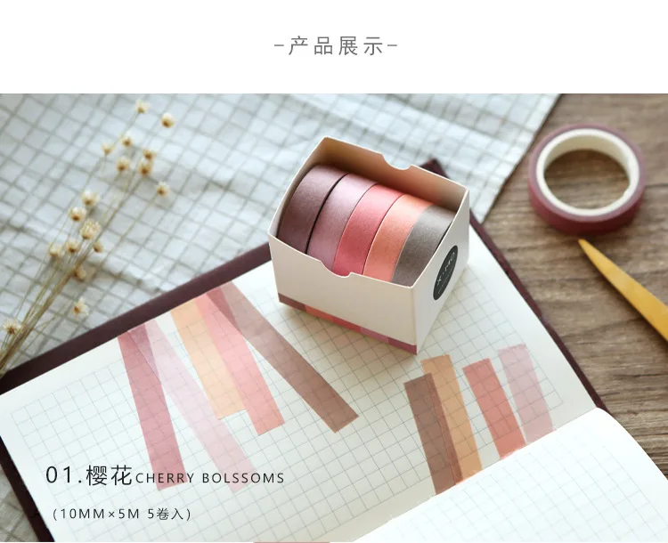 5 шт.компл. симпатичная однотонная Васи-лента, Маскировочная лента, органайзер, декоративная клейкая наклейка, скрапбукинг, дневник, планировщик, канцелярские принадлежности