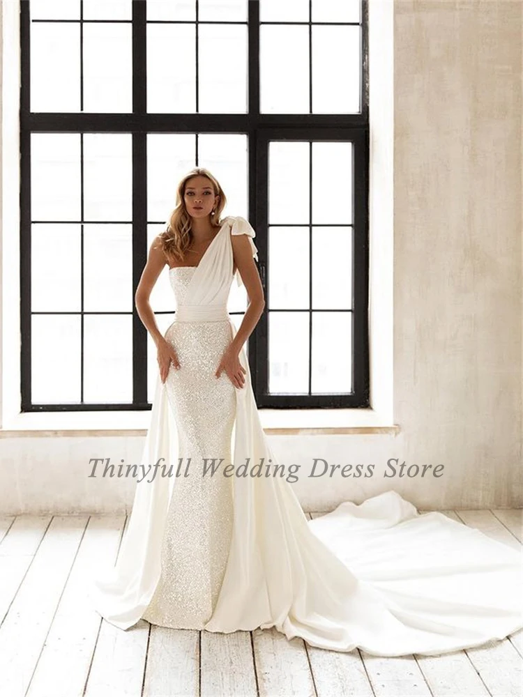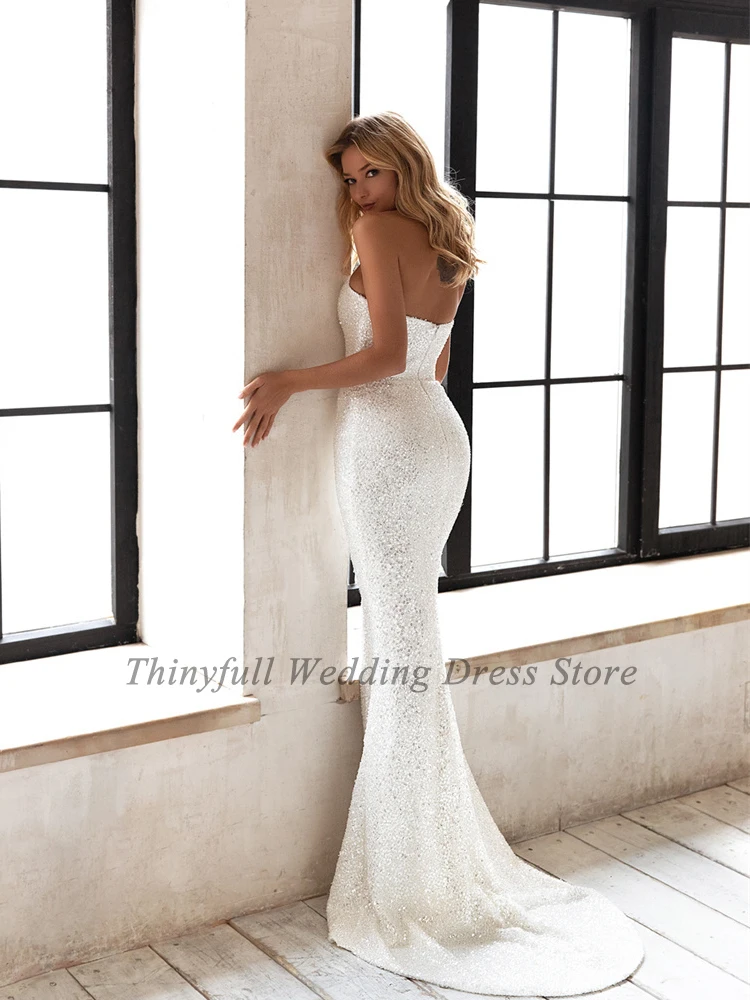 Thinyfull Новые блестящие Длинные свадебные платья в стиле бохо с открытым плечом и вырезом лодочкой пляжные вечерние платья принцессы Свадебные платья