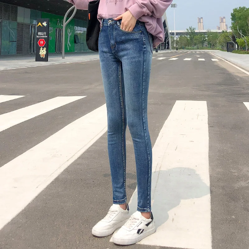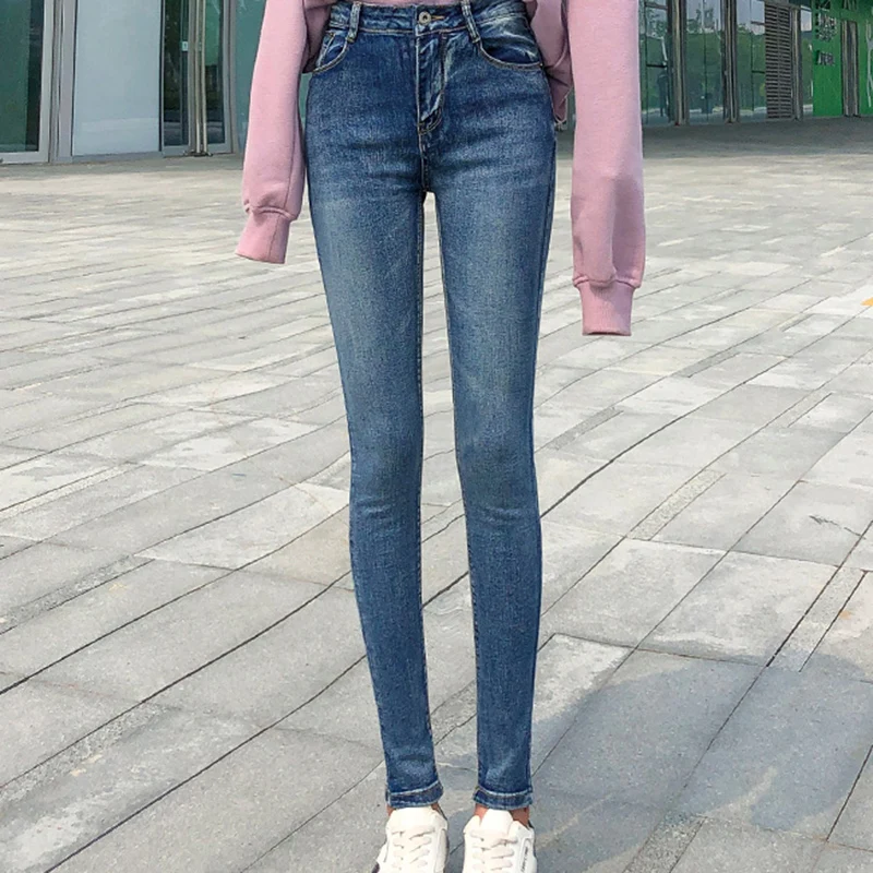 2021 женские эластичные облегающие джинсы с высокой талией, размер d, женские студенческие зимние теплые черные брюки с плюшевой подкладкой, Осенние облегающие брюки