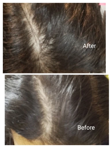 Вау! Благодаря этому, мои волосы стали намного толще и толще. Это особенно помогает с этим облысением; Слева фото раньше. Это действительно Святого Грааль моего средства для укрепления волос! Я пользуюсь этим почти 3 недели. Определенно рекомендую!