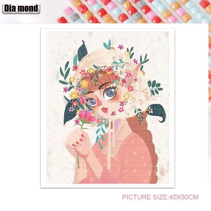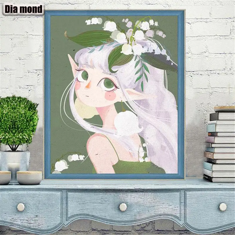 5D алмазная живопись "сделай сам", Большая фотография, мультяшная девушка, картины для вышивки крестиком, домашний декор ручной работы