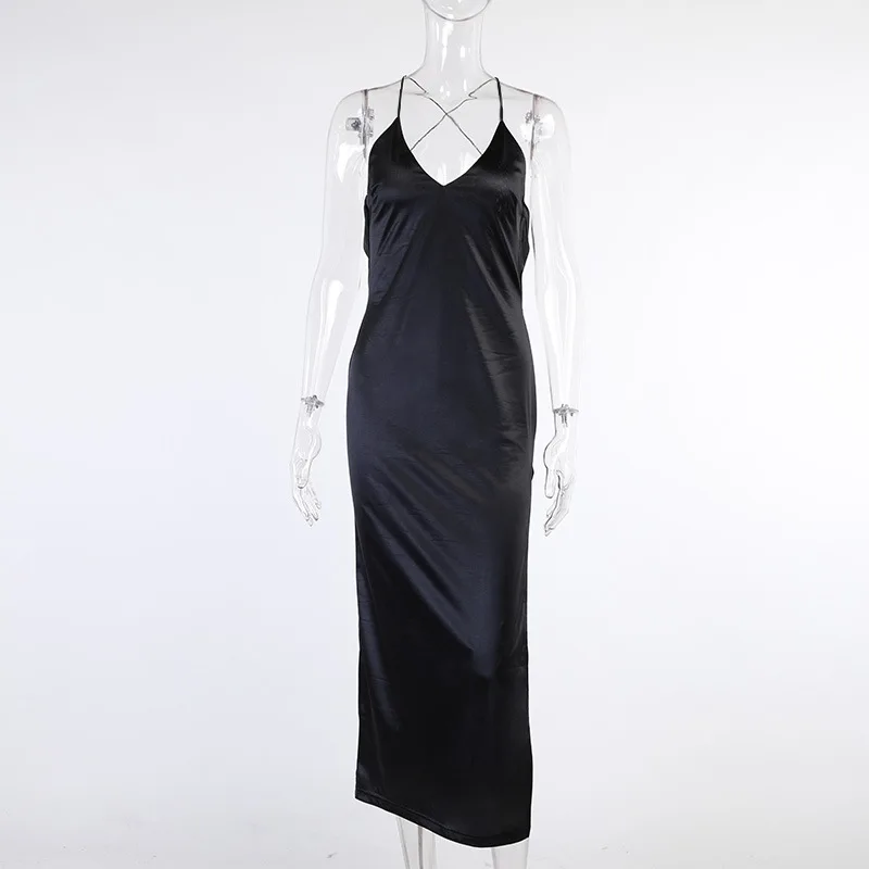 Женское летнее платье, облегающие сексуальные длинные платья с лямкой на шее и разрезом, лифчик с V-образным вырезом, Клубная одежда Вечерние вечернее платье, женское модное платье на бретелях-спагетти