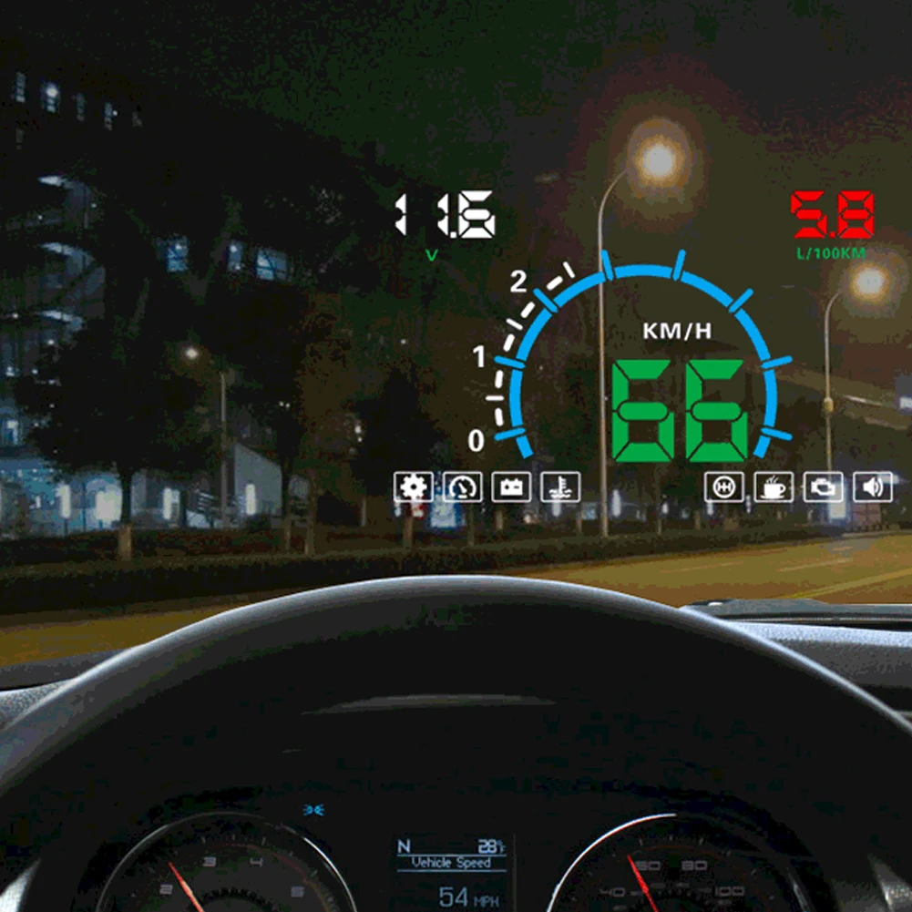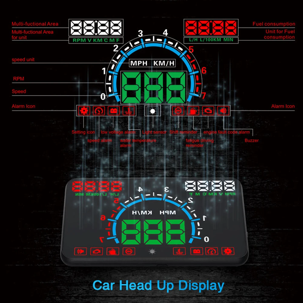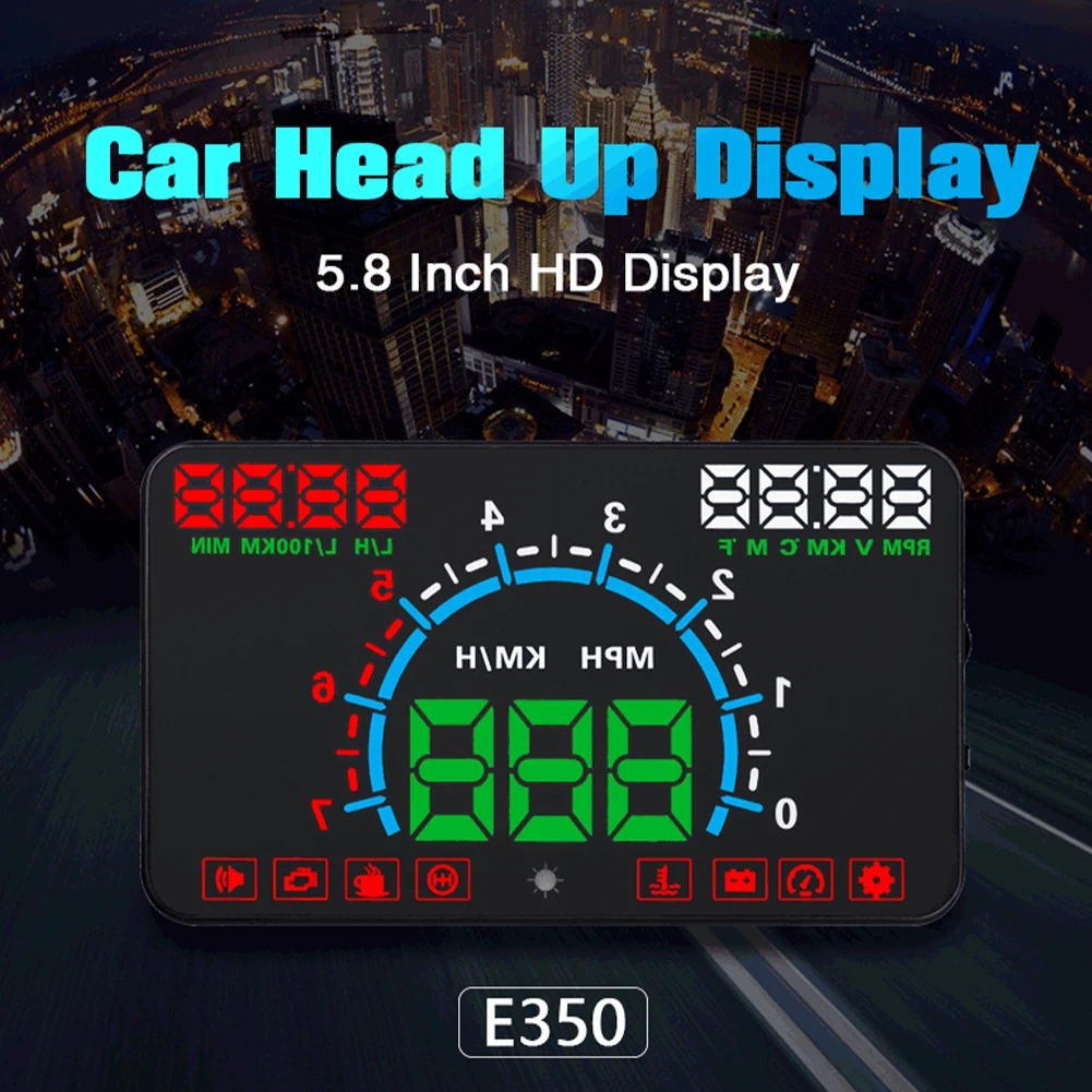 Автомобильный дисплей на лобовое стекло HUD 5,8 дюйма, цветной дисплей OBD2, код неисправности, диагностическое предупреждение о превышении скорости, система проектора на лобовое стекло