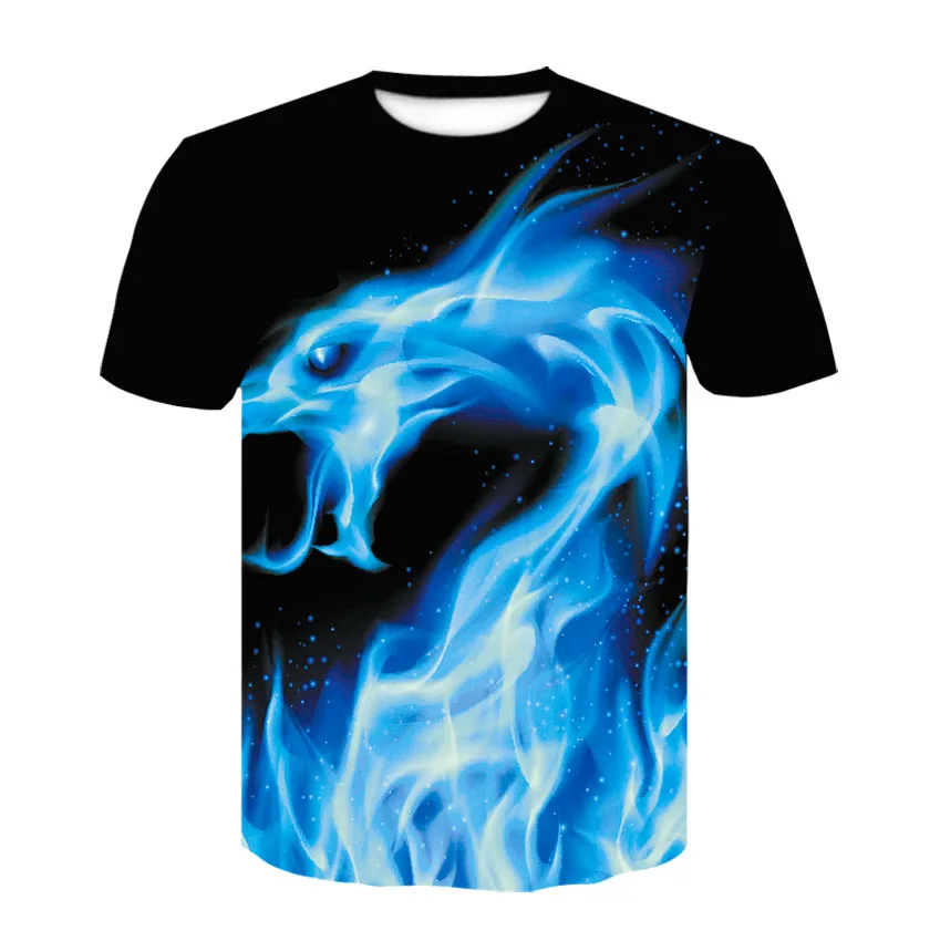 Новые летние классные стильные футболки в стиле хип-хоп для мужчин и женщин, футболка с 3D принтом синего пламени дракона, мужская одежда в стиле Харадзюку, 2021 искусственных элементов